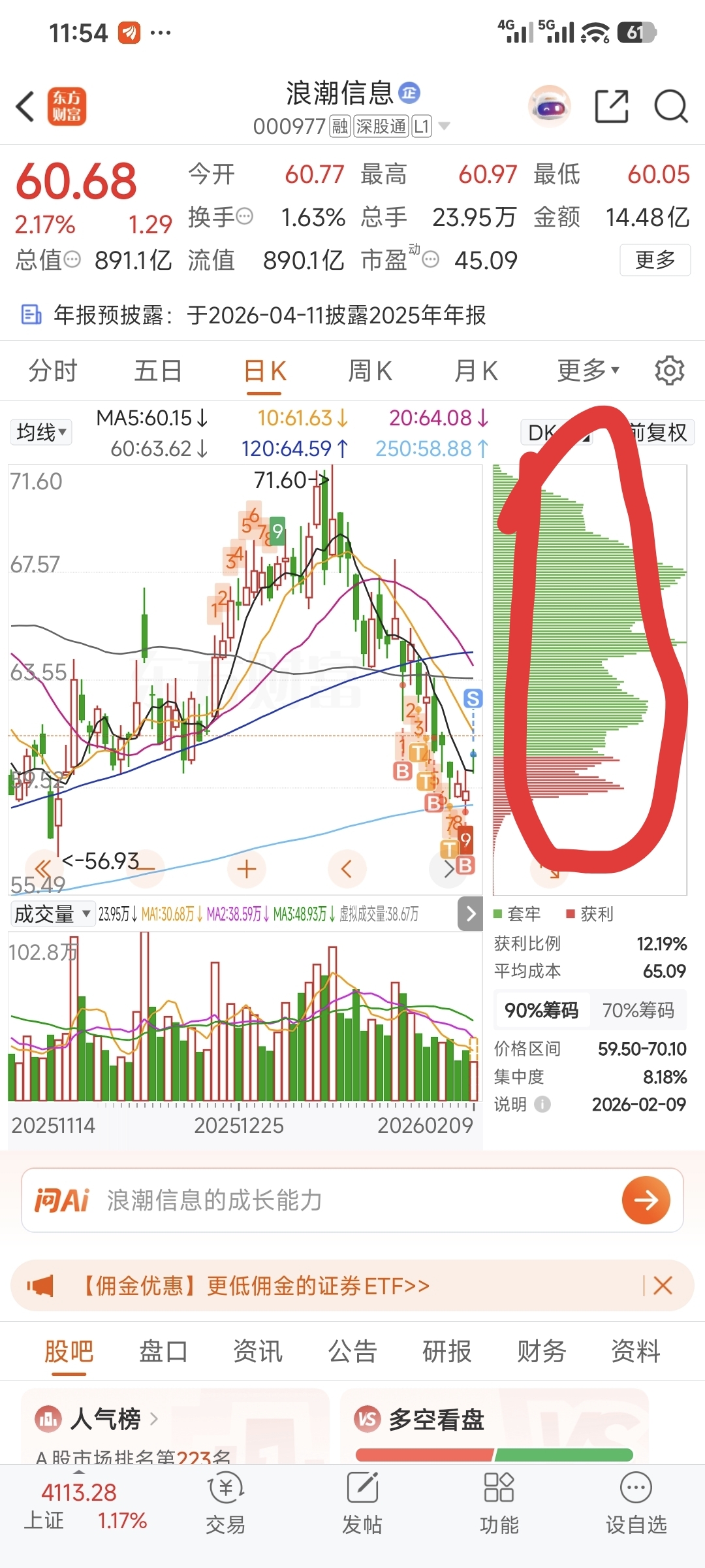 $浪潮信息(SZ000977)$ 上方筹码峰还没回落,套牢盘太大了,跟着庄家来回做套降成本。