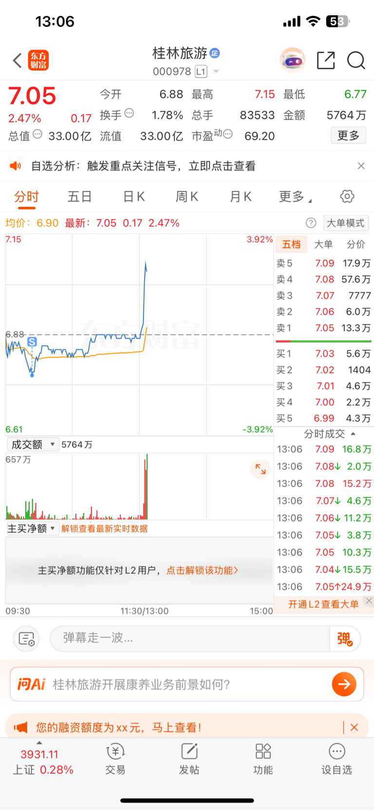 $桂林旅游(SZ000978)$ 精准卖在当日最低点