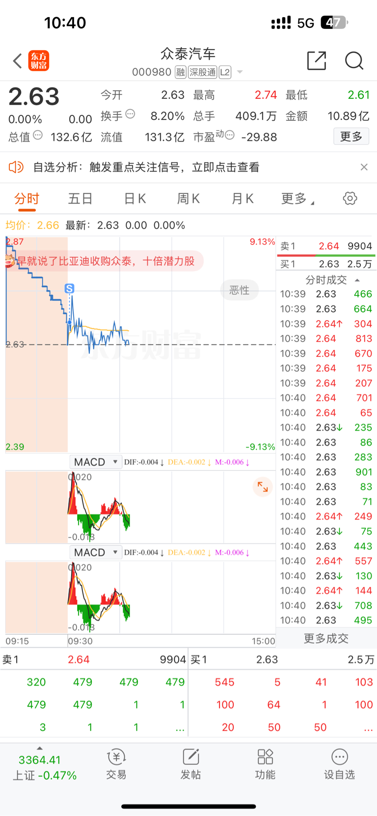 $众泰汽车(SZ000980)$ 今天能走就走吧,别嘴,目前处于高切低行情。