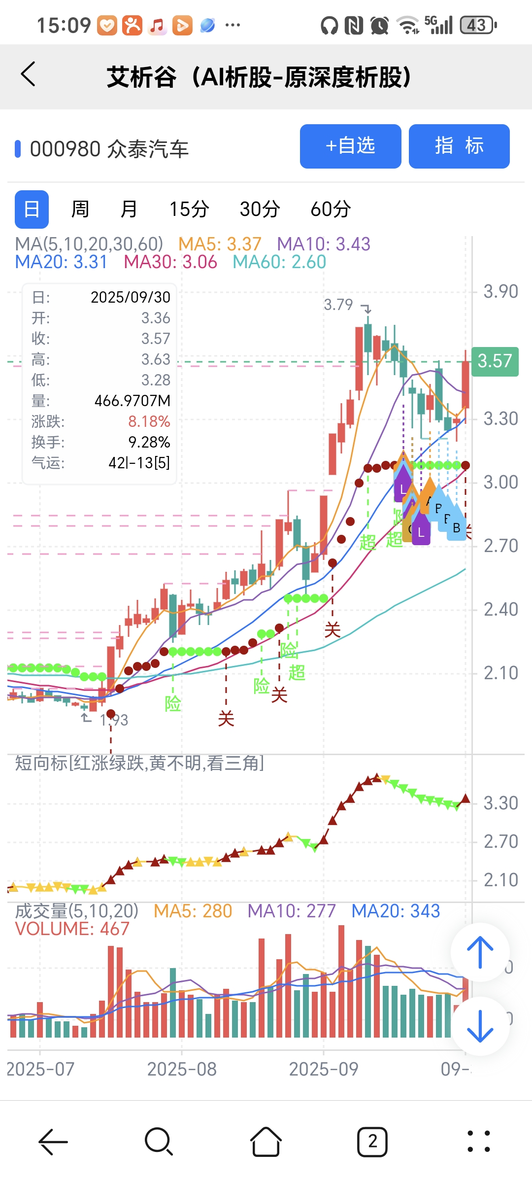 红绿小圆点是艾析谷的量化指标-超级短趋线,是趋势跟踪+突破类的量化指标,完全免费。
