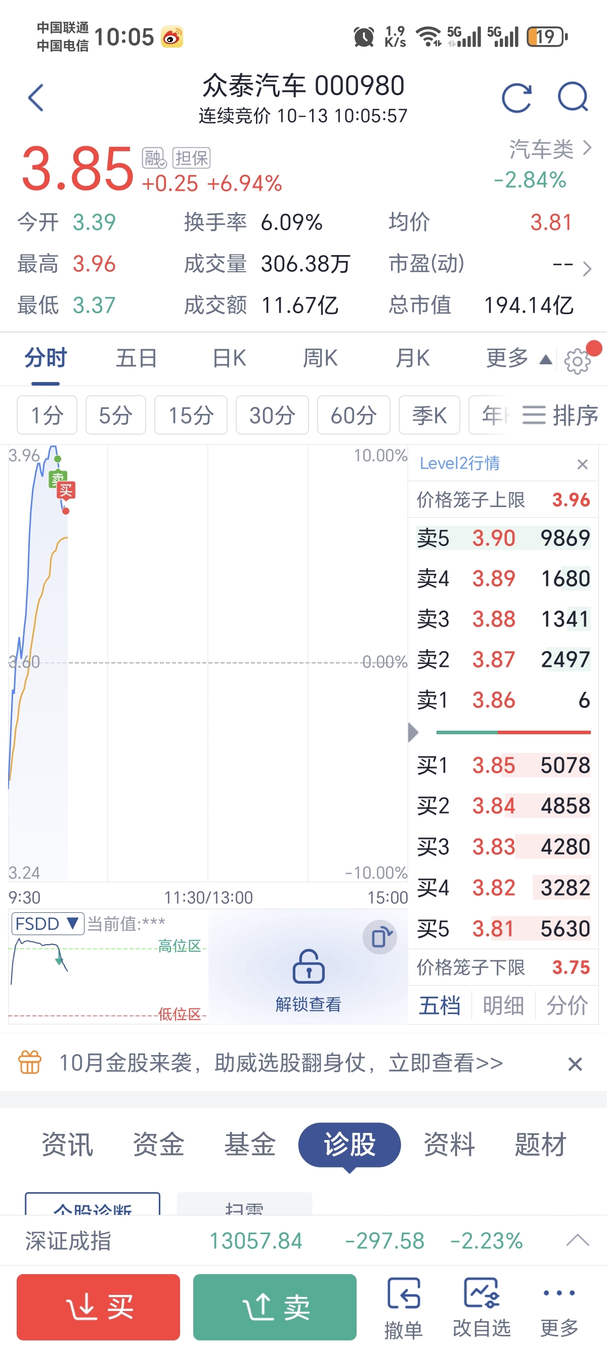 $众泰汽车(SZ000980)$ T一毛,今天依旧看好