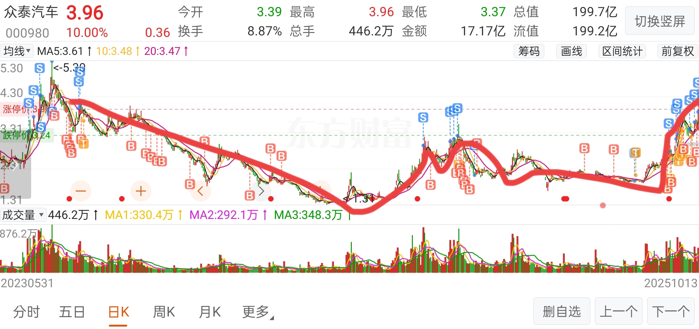 $众泰汽车(SZ000980)$ 黄金十月能否突破5.3压力位,拭目以待