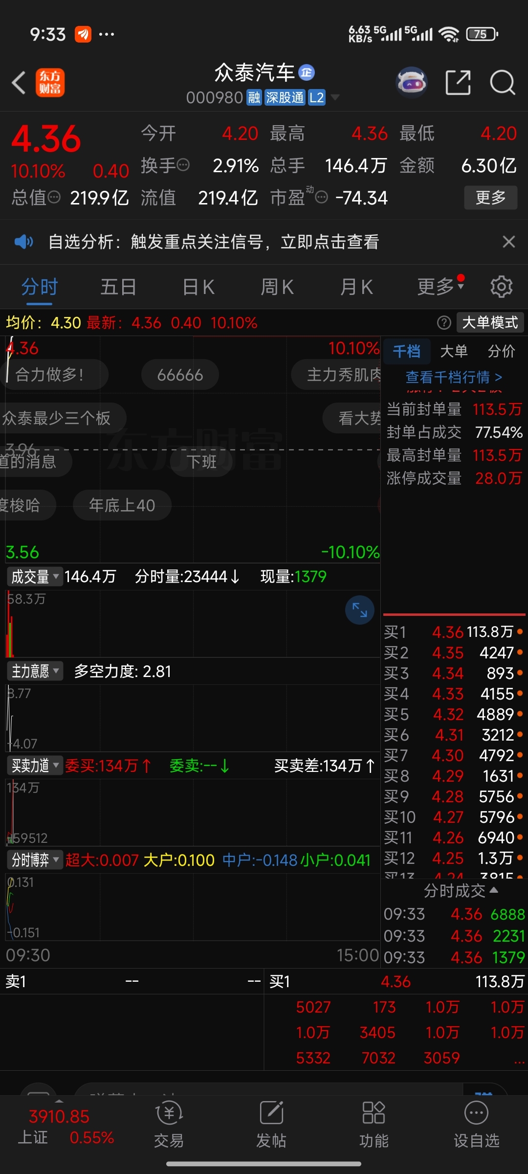 $众泰汽车(SZ000980)$ 继续上行,兄弟们拿住了