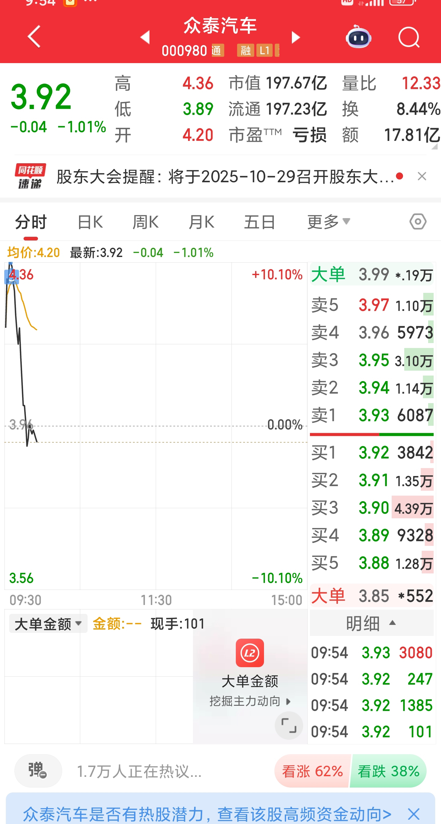 $众泰汽车(SZ000980)$ 涨停卖掉了 我在想要不要接回来