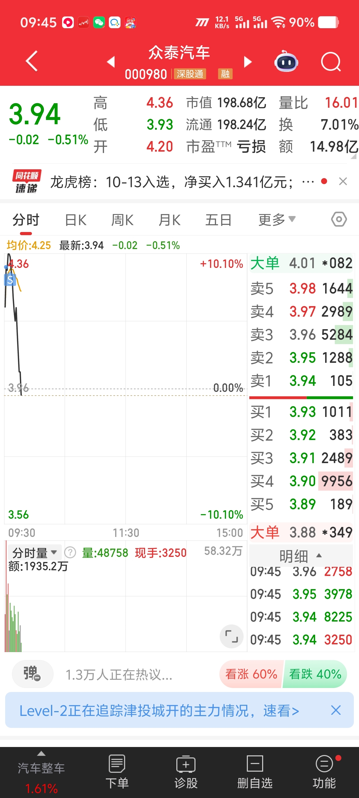 $众泰汽车(SZ000980)$ 感谢家人们接我的筹码