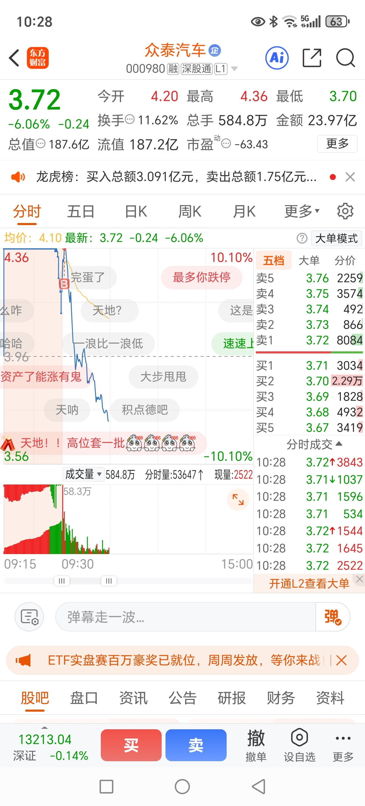 $众泰汽车(SZ000980)$ 快跌停吧!别装淡了!我赔点无所谓,主要是赔死你