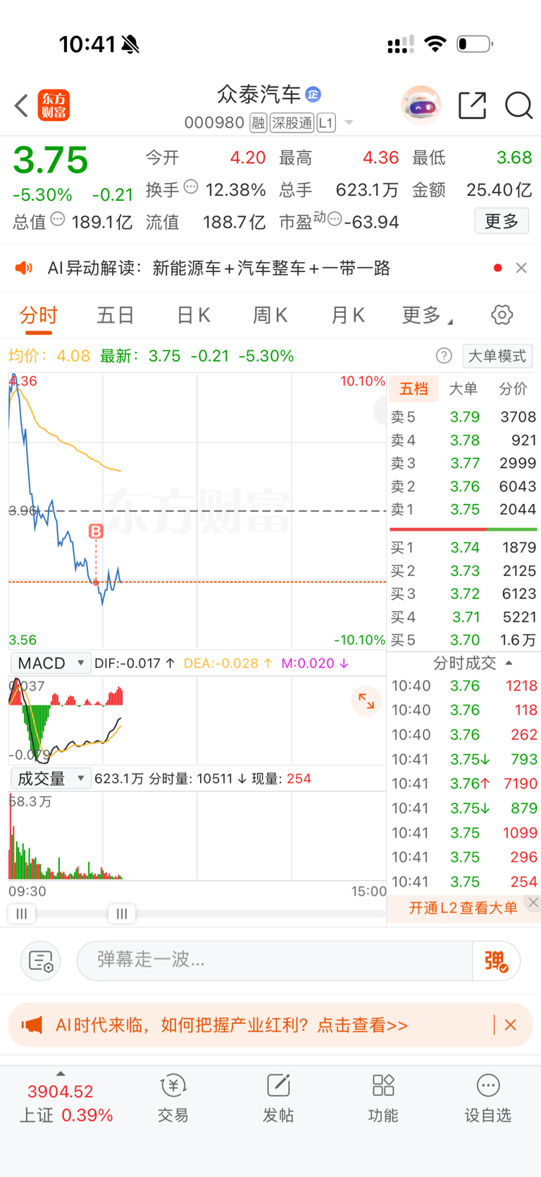 $众泰汽车(SZ000980)$ 入手早了一点,可以370再入的,今天看调整,希望可以修复