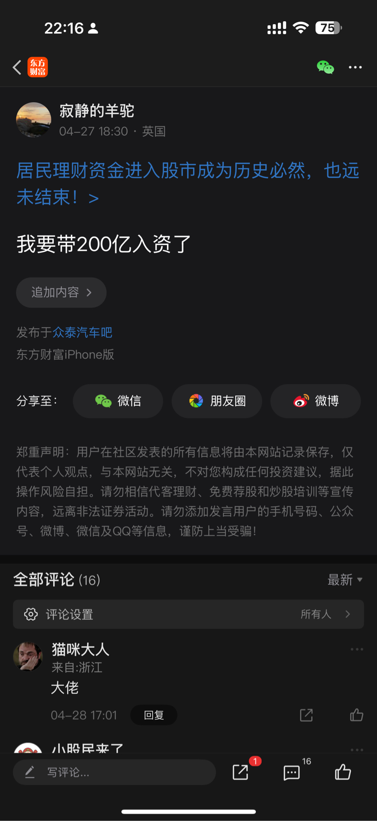 温馨提示: 1.根据《证券法》规定,禁止编造、传播虚假信息或者误导性信息,扰乱证券市场;2.用户在本社区发表的所有资料、言论等仅代表个人观点,与本网站立场无关,不对您构成任何投资建议。用户应基于自己的独立判断,自行决定证券投资并承担相应风险。《东方财富社区管理规定》