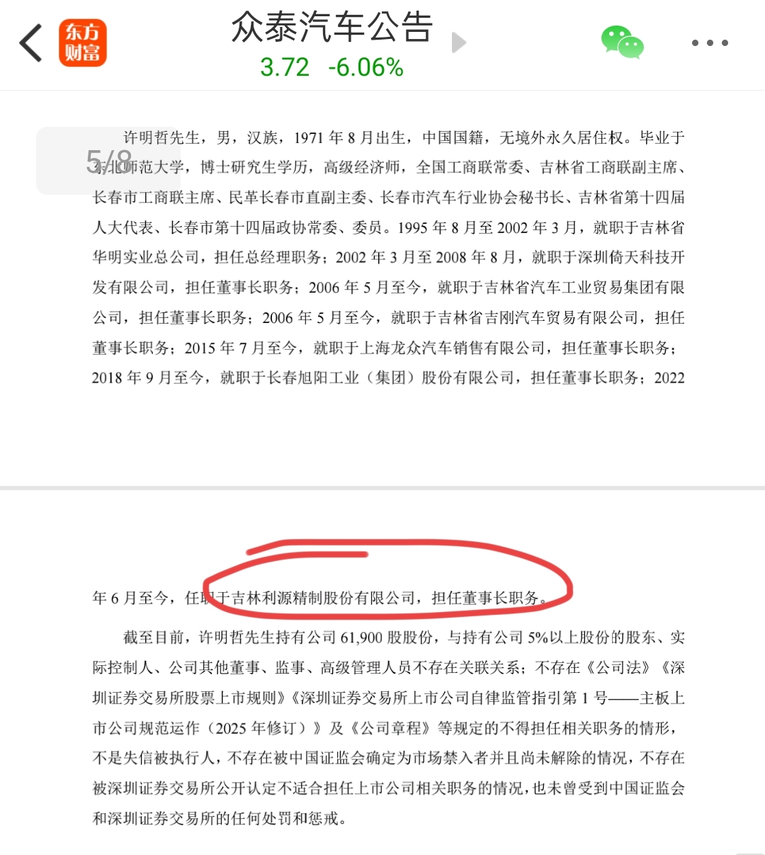 持有众泰61900股的有毒,一提名众泰董事就跌了16%有毒