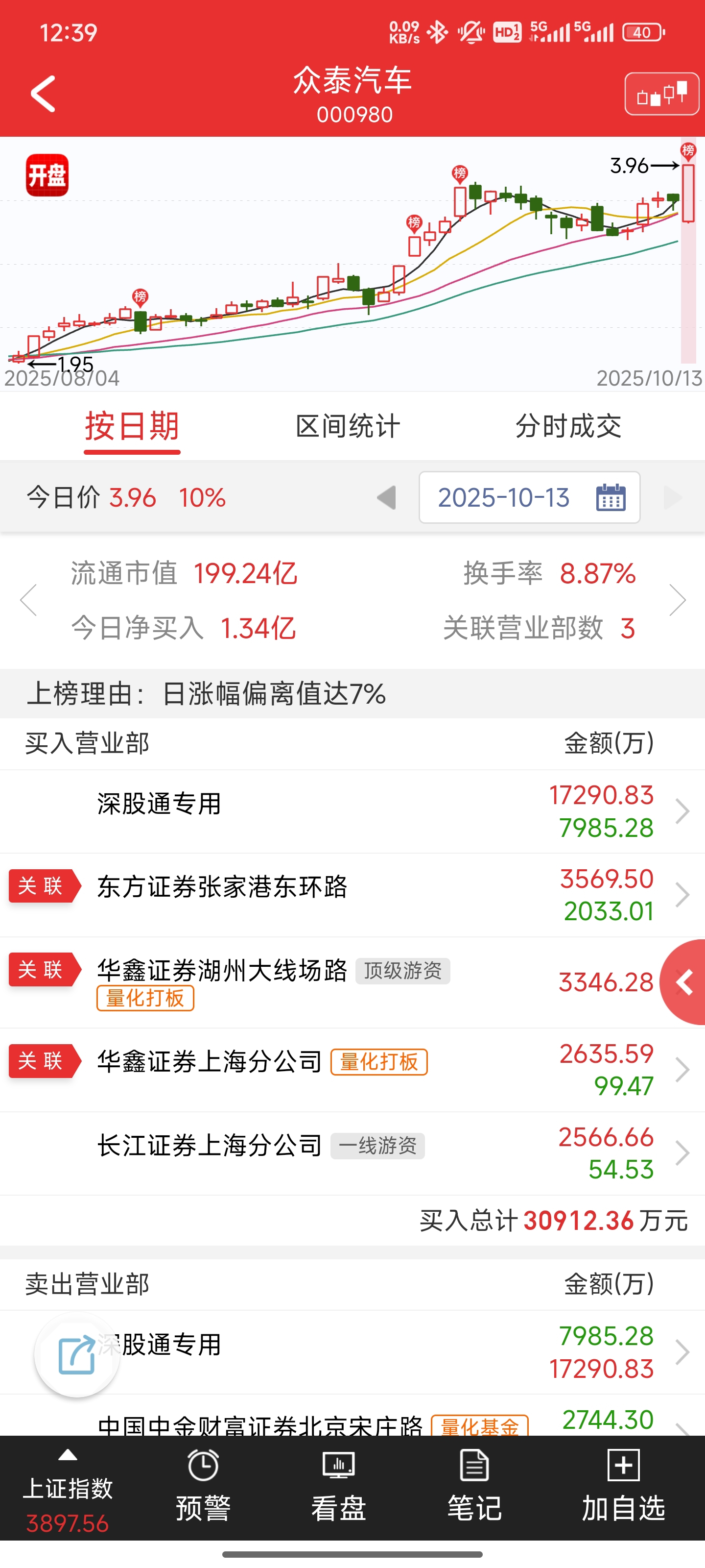 $众泰汽车(SZ000980)$ 这是昨天打板的量化跑了吧