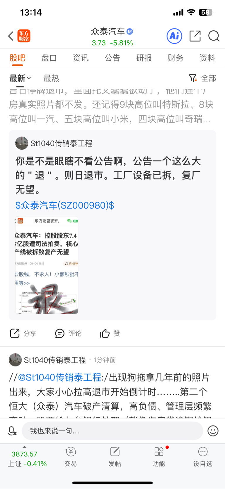 温馨提示: 1.根据《证券法》规定,禁止编造、传播虚假信息或者误导性信息,扰乱证券市场;2.用户在本社区发表的所有资料、言论等仅代表个人观点,与本网站立场无关,不对您构成任何投资建议。用户应基于自己的独立判断,自行决定证券投资并承担相应风险。《东方财富社区管理规定》