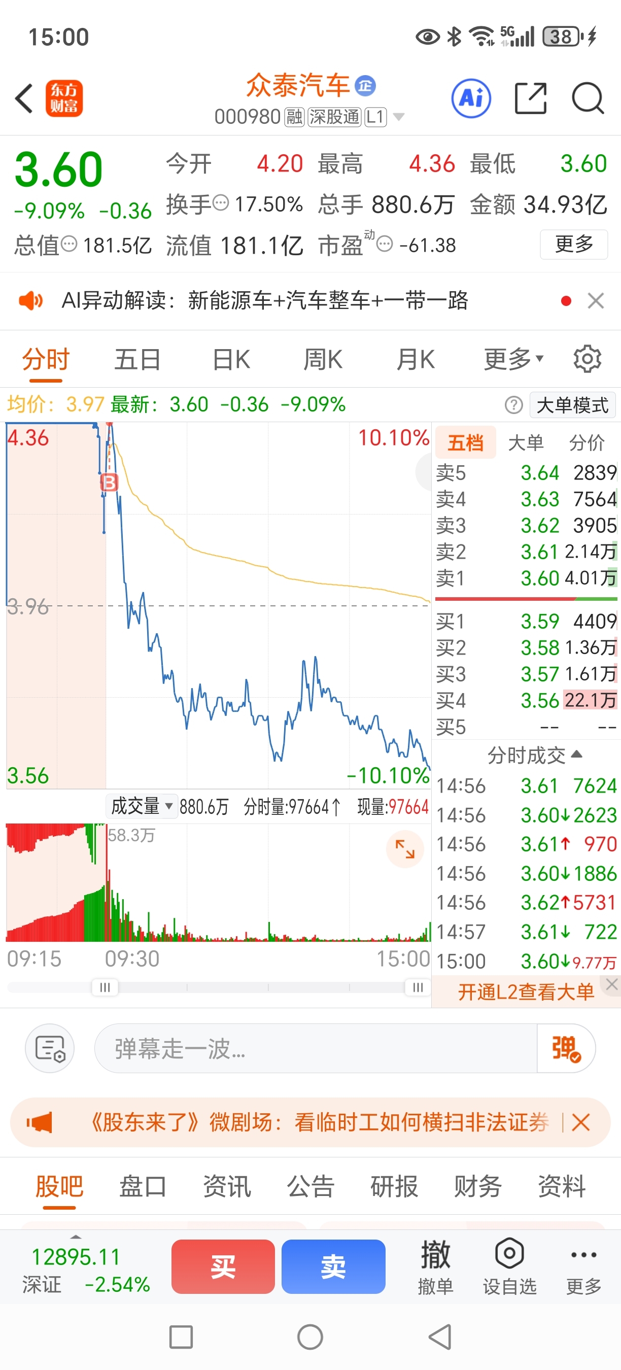 $众泰汽车(SZ000980)$ 祝愿今天砸盘的主力今后股票绿,帽子绿,眼睛绿,肠子绿!吃绿的拉绿的!绿死你