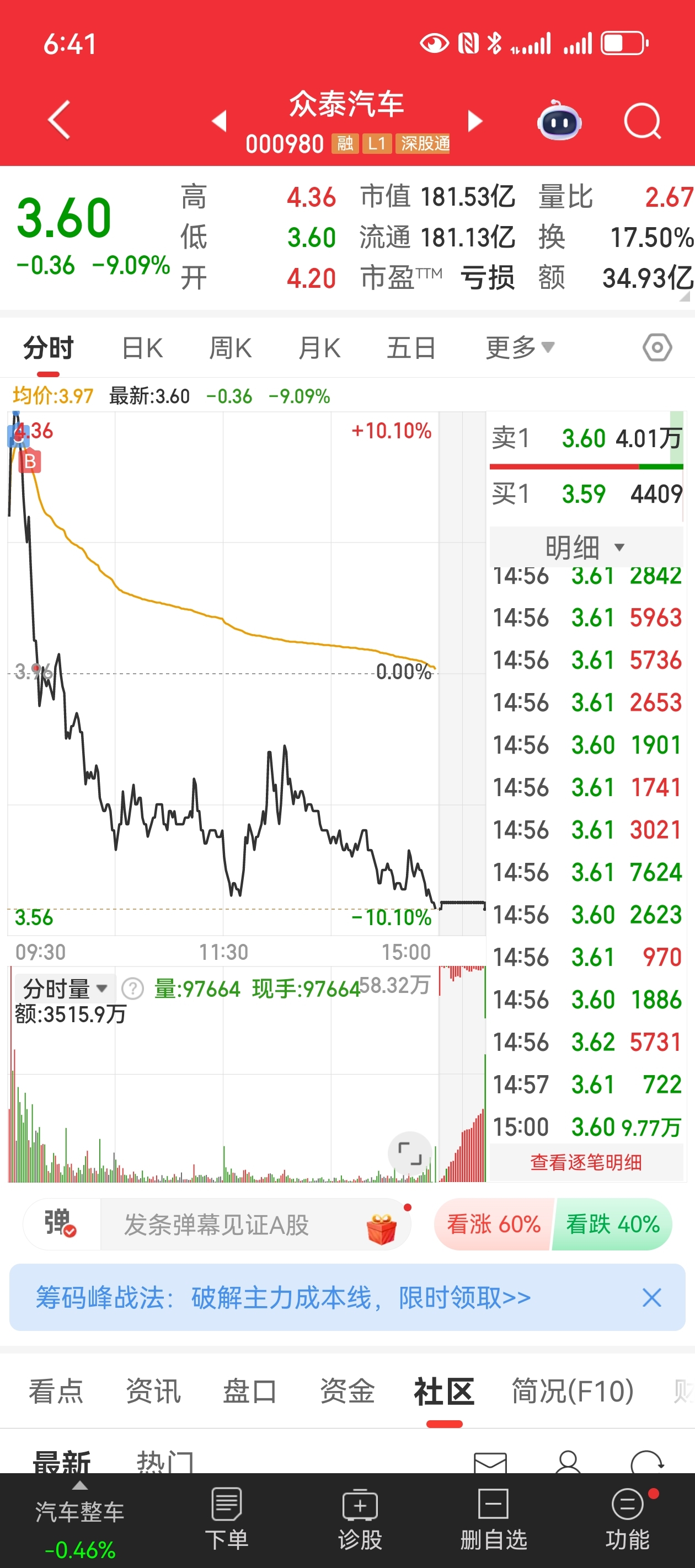 今天有大佬给我发语音跟我说:防守一波,我听成了放手一搏。还给我说上方有阻力,我听成了上方有主力。板上做个小T,下到3.97直接满仓了,该咋办呢