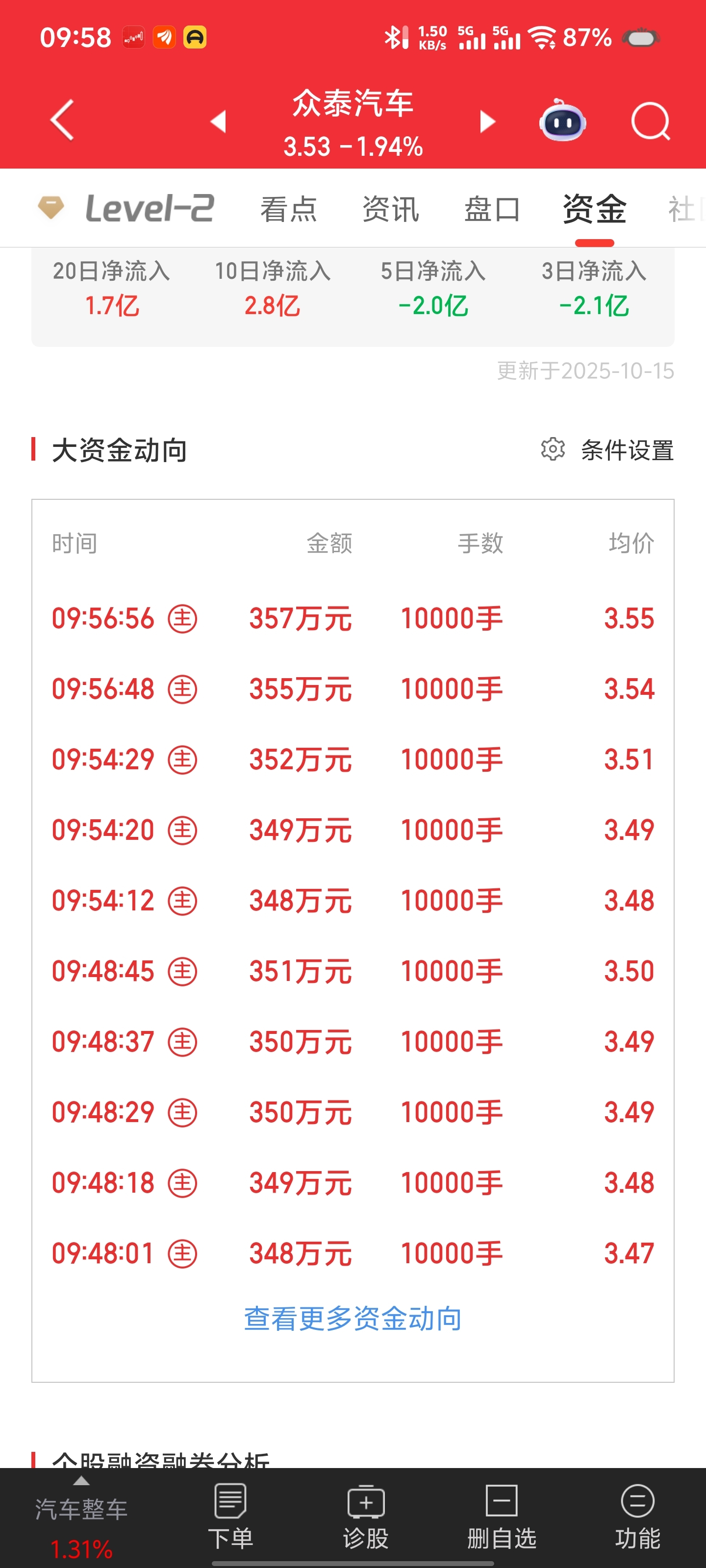 $众泰汽车(SZ000980)$ 主力军