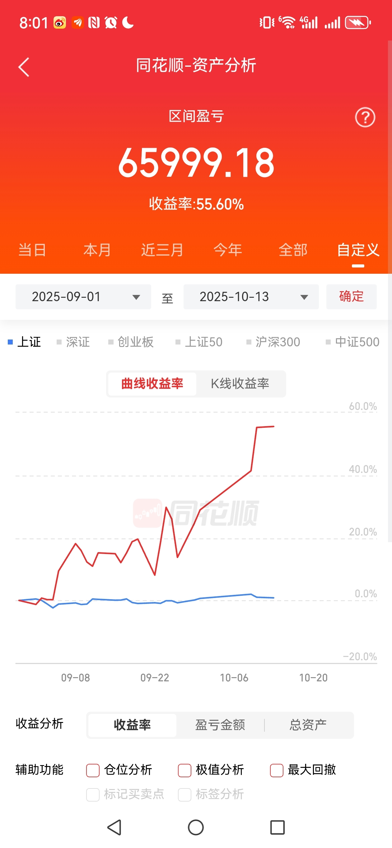9月1号到10月13日的收益率。14日,二选一,众泰和海马。没看基本面,进了众泰