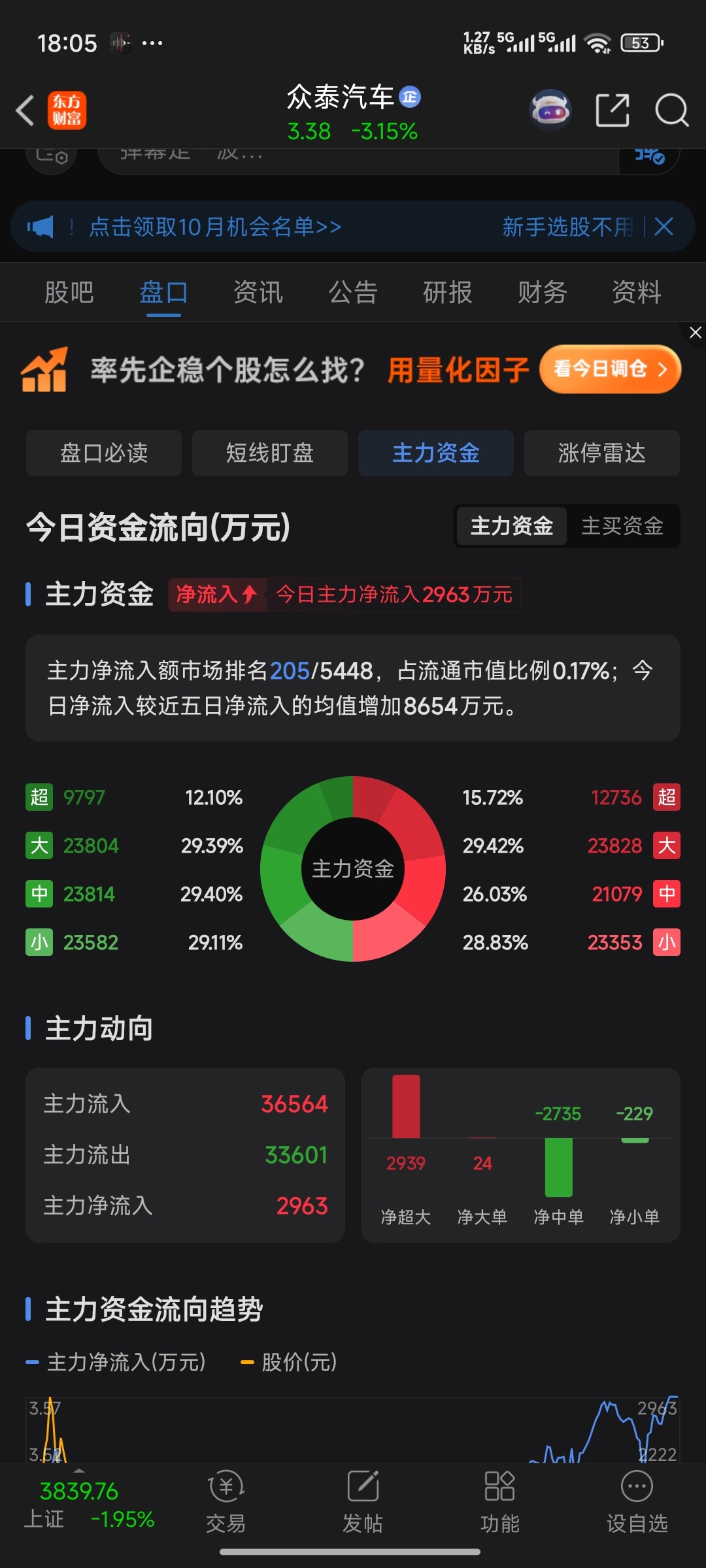 $众泰汽车(SZ000980)$ 拿到手机,上来一看,吓我一跳,今天跌的有点多啊,跌了1毛多