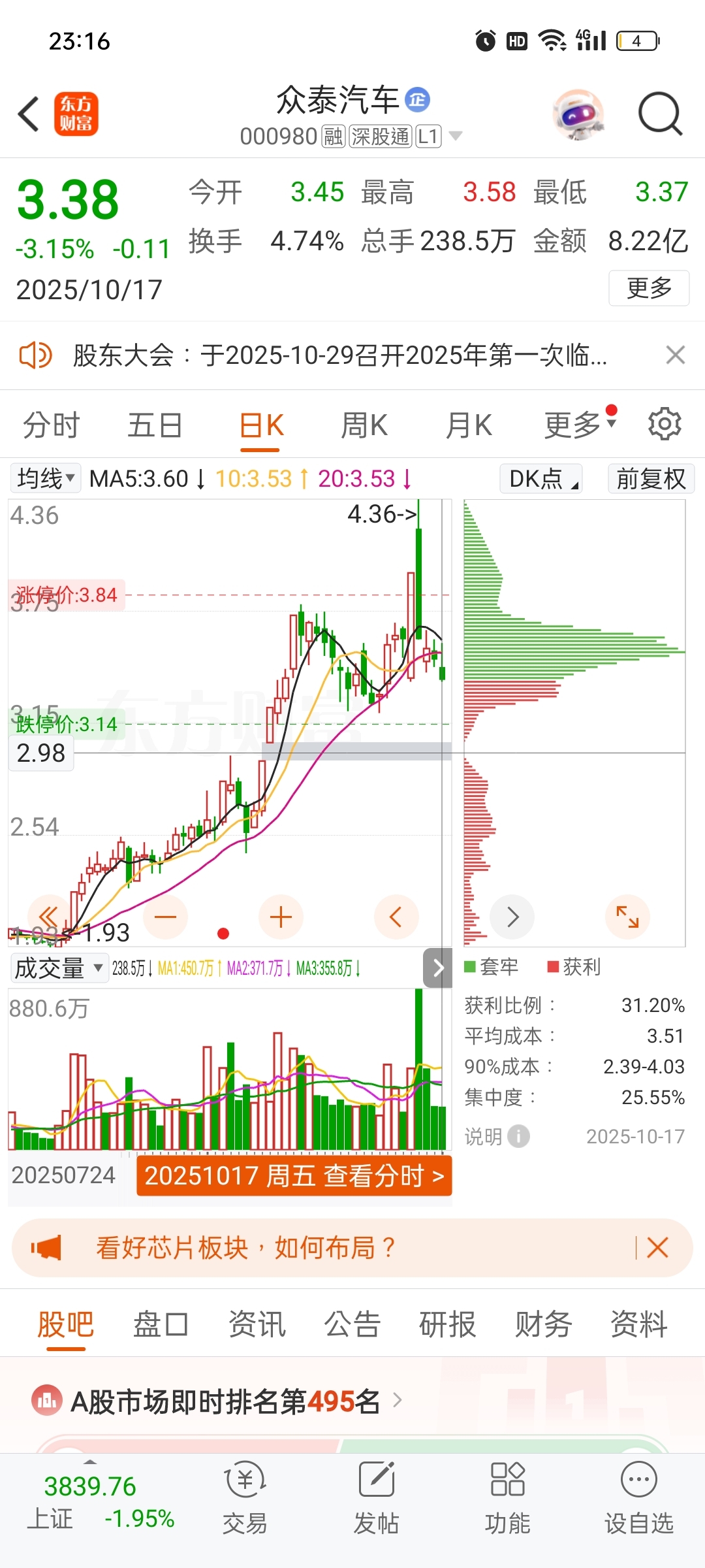 $众泰汽车(SZ000980)$ 3块的缺口势必要去补,砸到2.5,让你们4.36买的人套到明年ST,除非重组还有希望