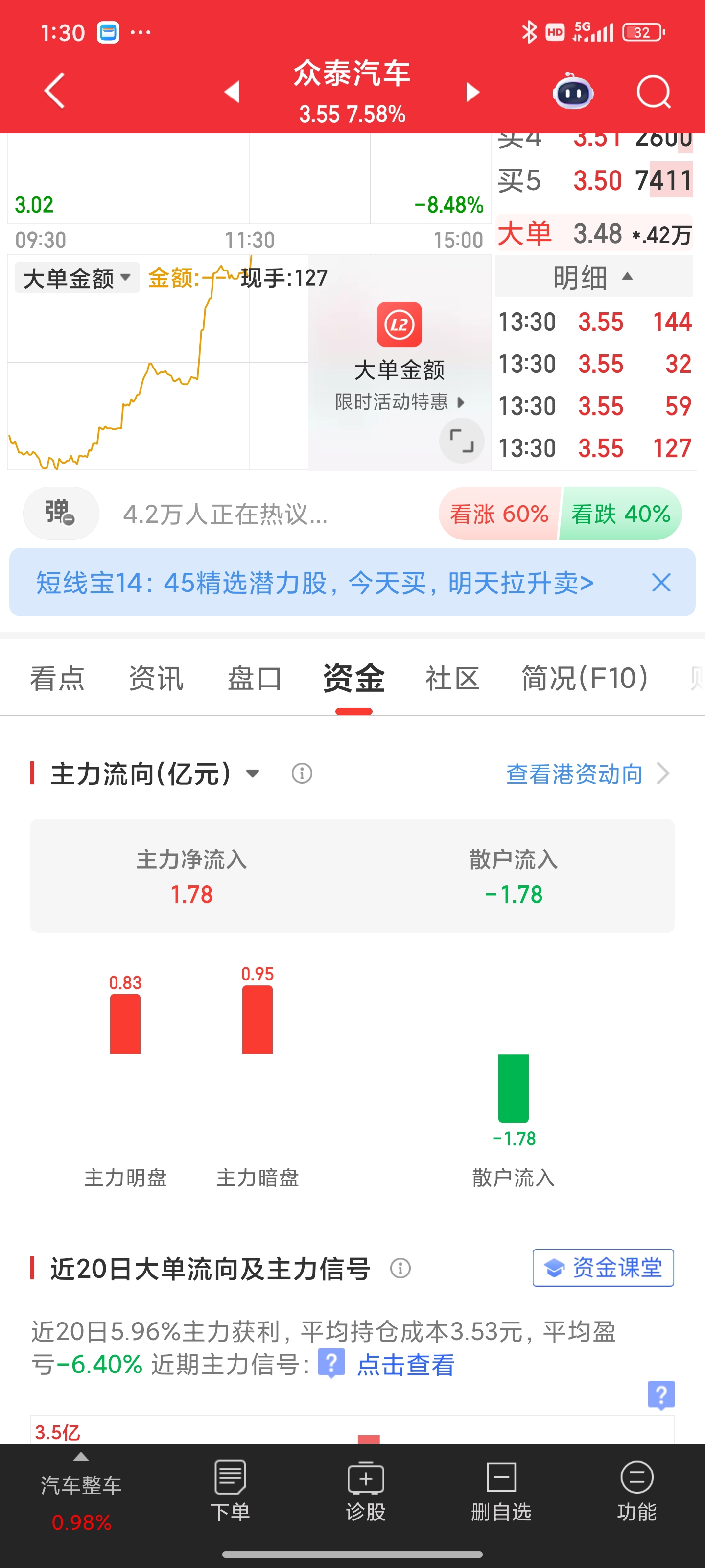$众泰汽车(SZ000980)$ 又开始一波了吗,同花顺的暗盘,主力资金进了 1.7个亿,,这意思又要雄起了