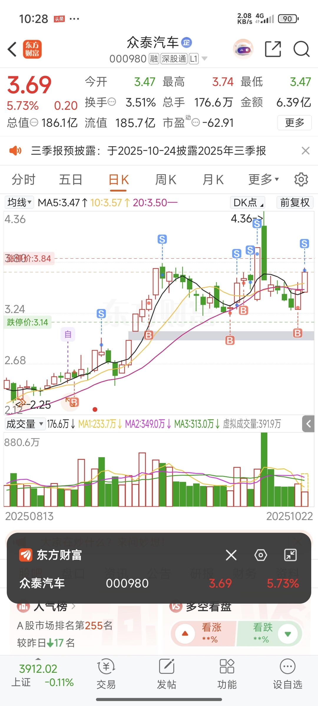 $众泰汽车(SZ000980)$ 多买点就好了,一直不敢买