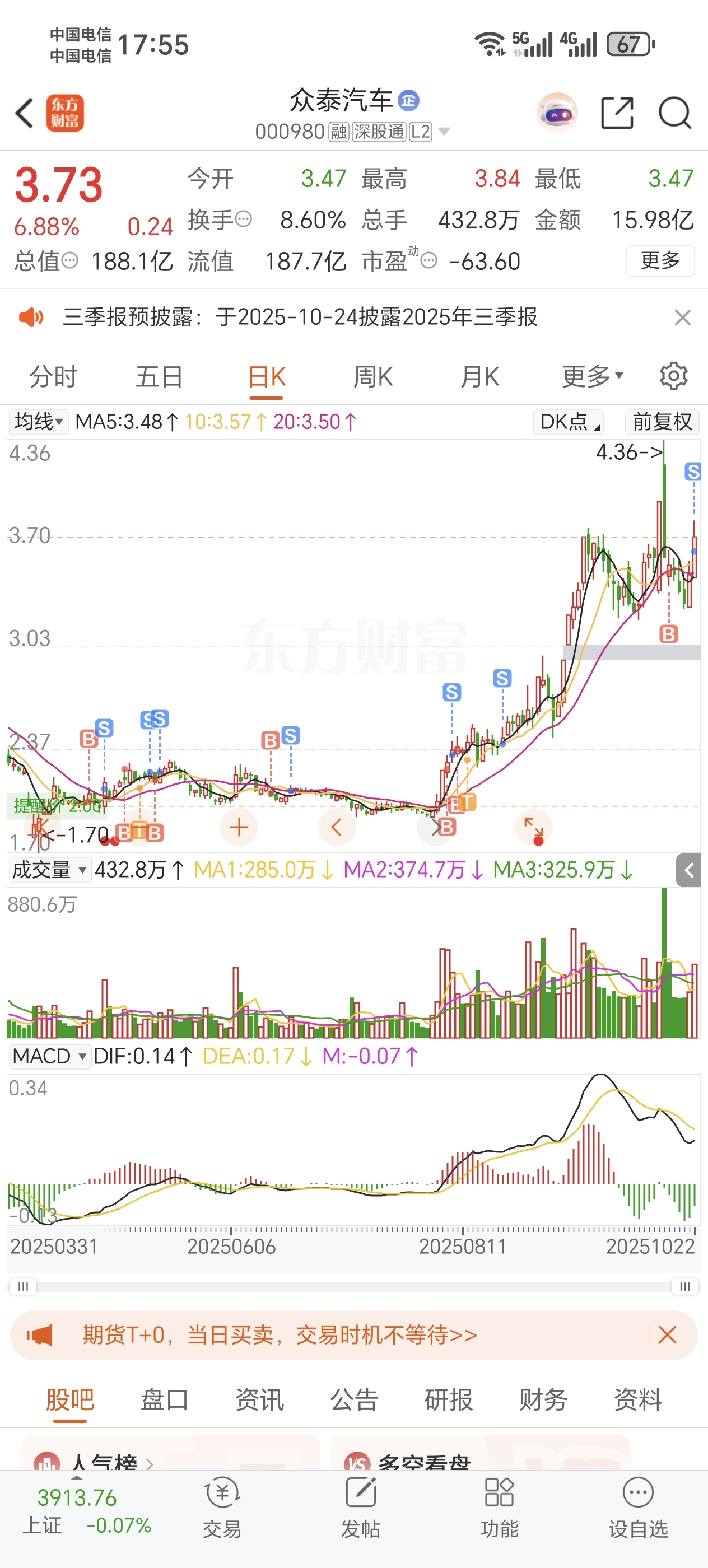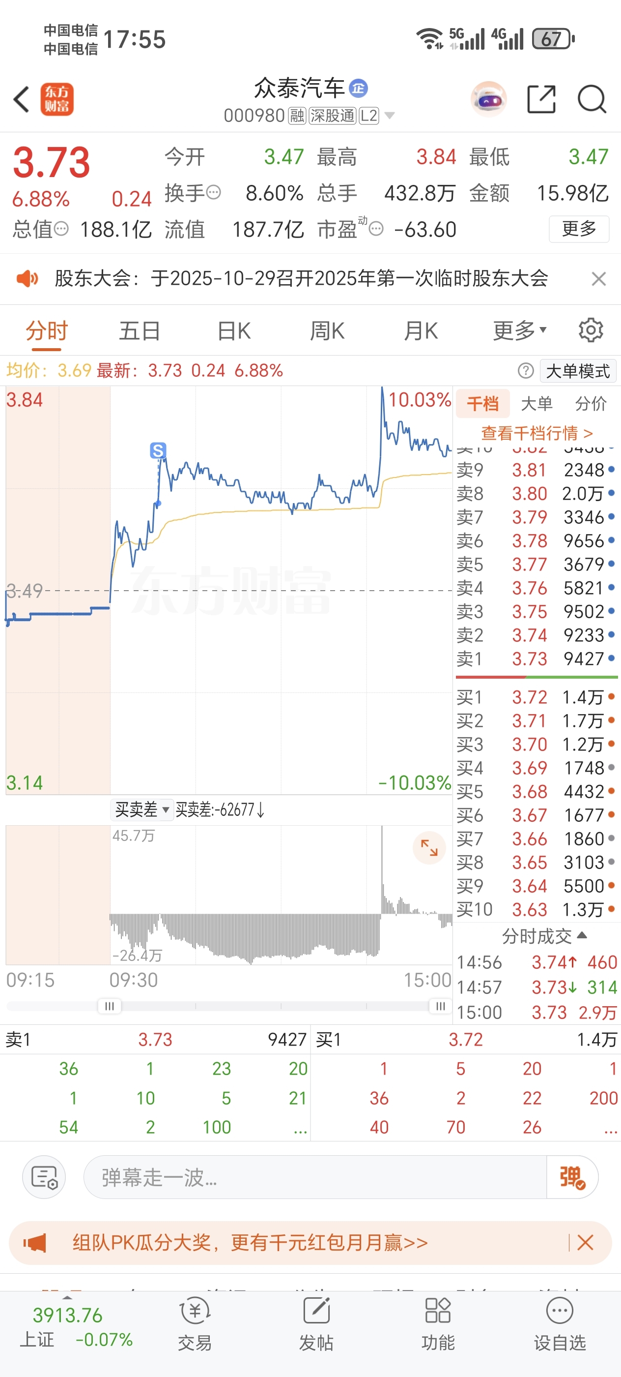 $众泰汽车(SZ000980)$ 每次都是吃小肉,不过我也不后悔。模式就是这样!