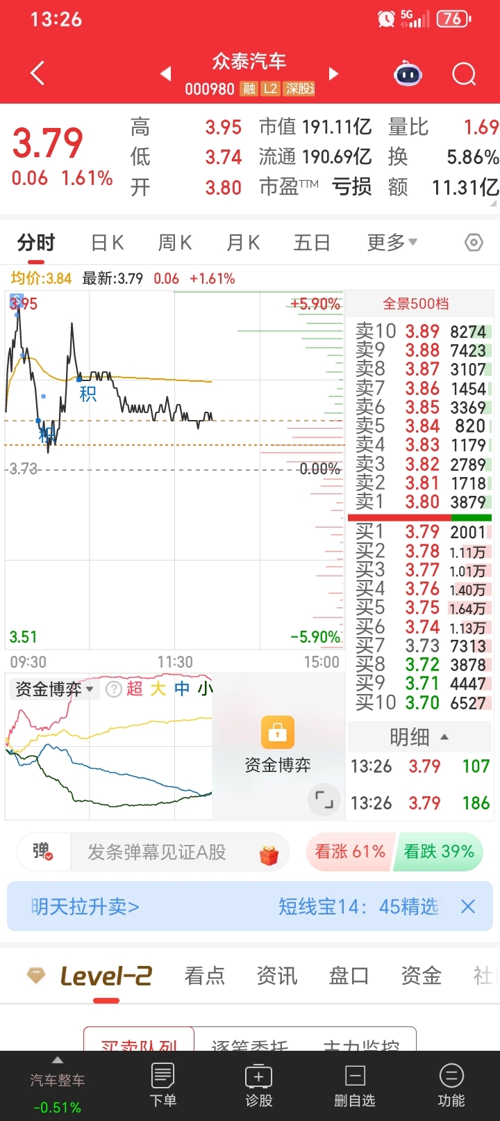 $众泰汽车(SZ000980)$ 昨天买今天最高点跑了