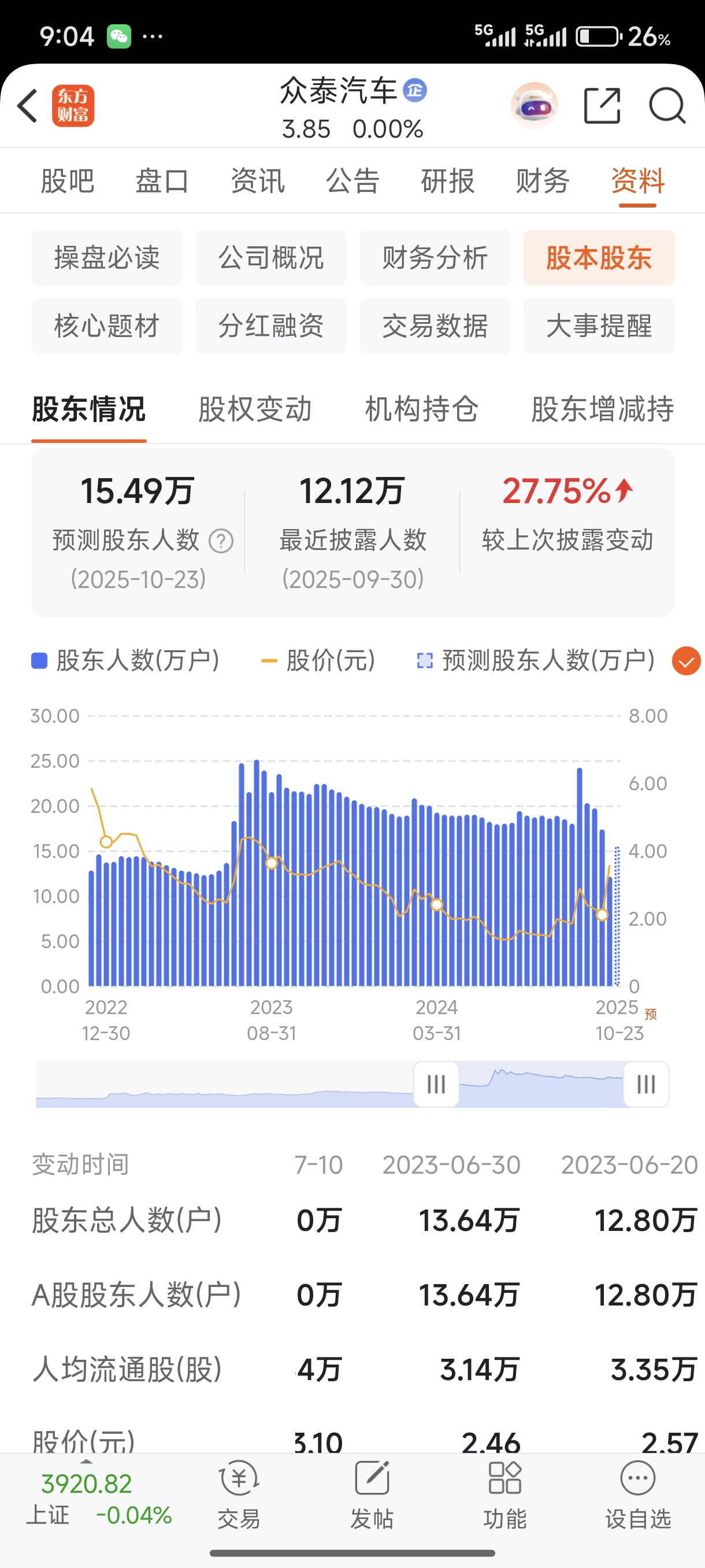 $众泰汽车(SZ000980)$ 股东数回到了22年水平