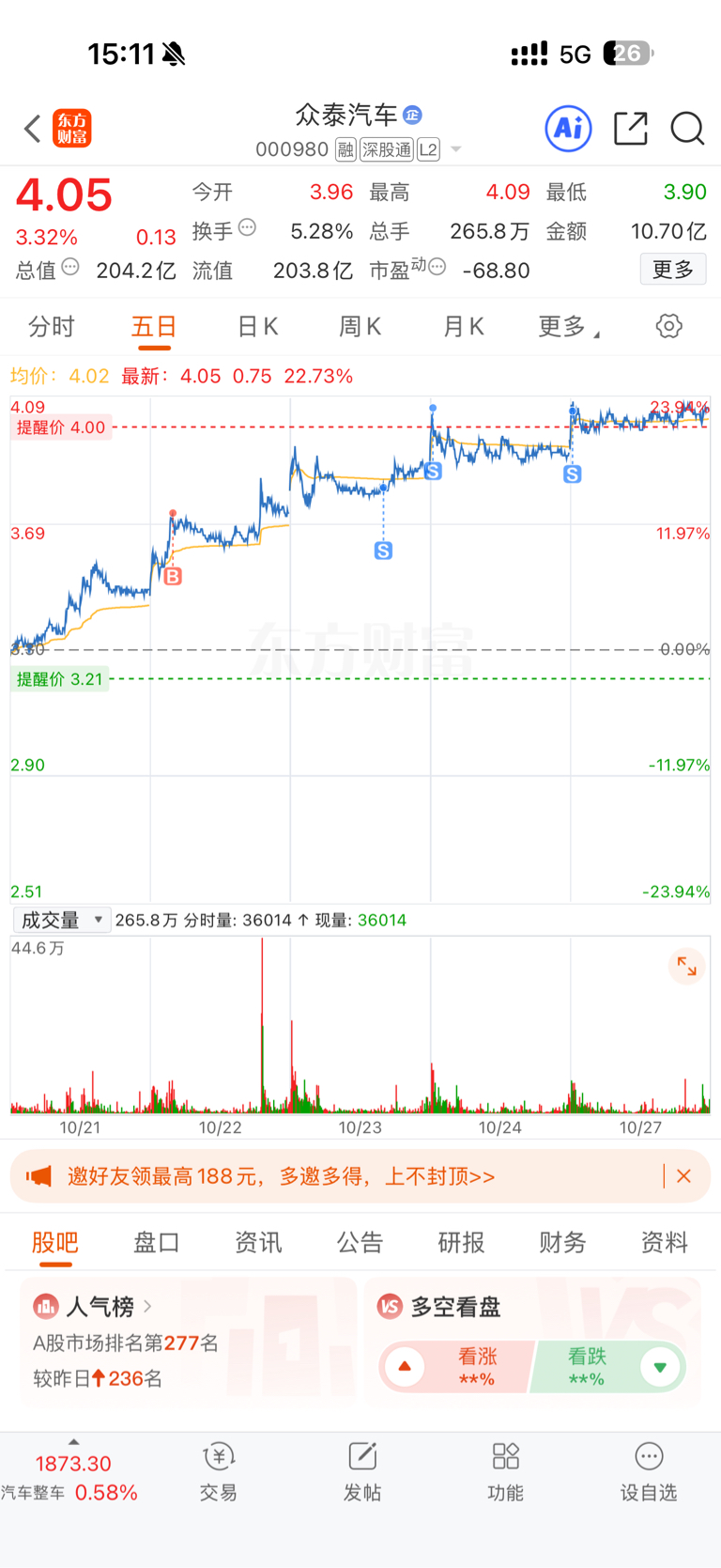 $众泰汽车(SZ000980)$ 这两天抛光了,不知道对或错
