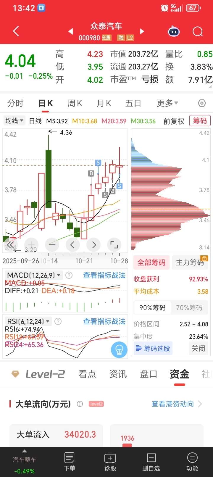 $众泰汽车(SZ000980)$ 两次卖了,挣了2万,先走了