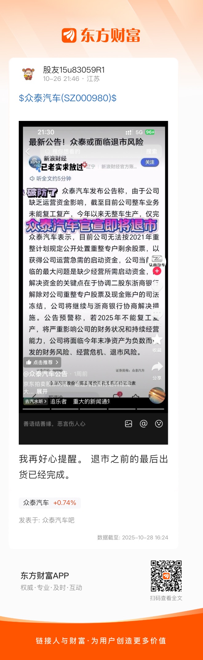 温馨提示: 1.根据《证券法》规定,禁止编造、传播虚假信息或者误导性信息,扰乱证券市场;2.用户在本社区发表的所有资料、言论等仅代表个人观点,与本网站立场无关,不对您构成任何投资建议。用户应基于自己的独立判断,自行决定证券投资并承担相应风险。《东方财富社区管理规定》