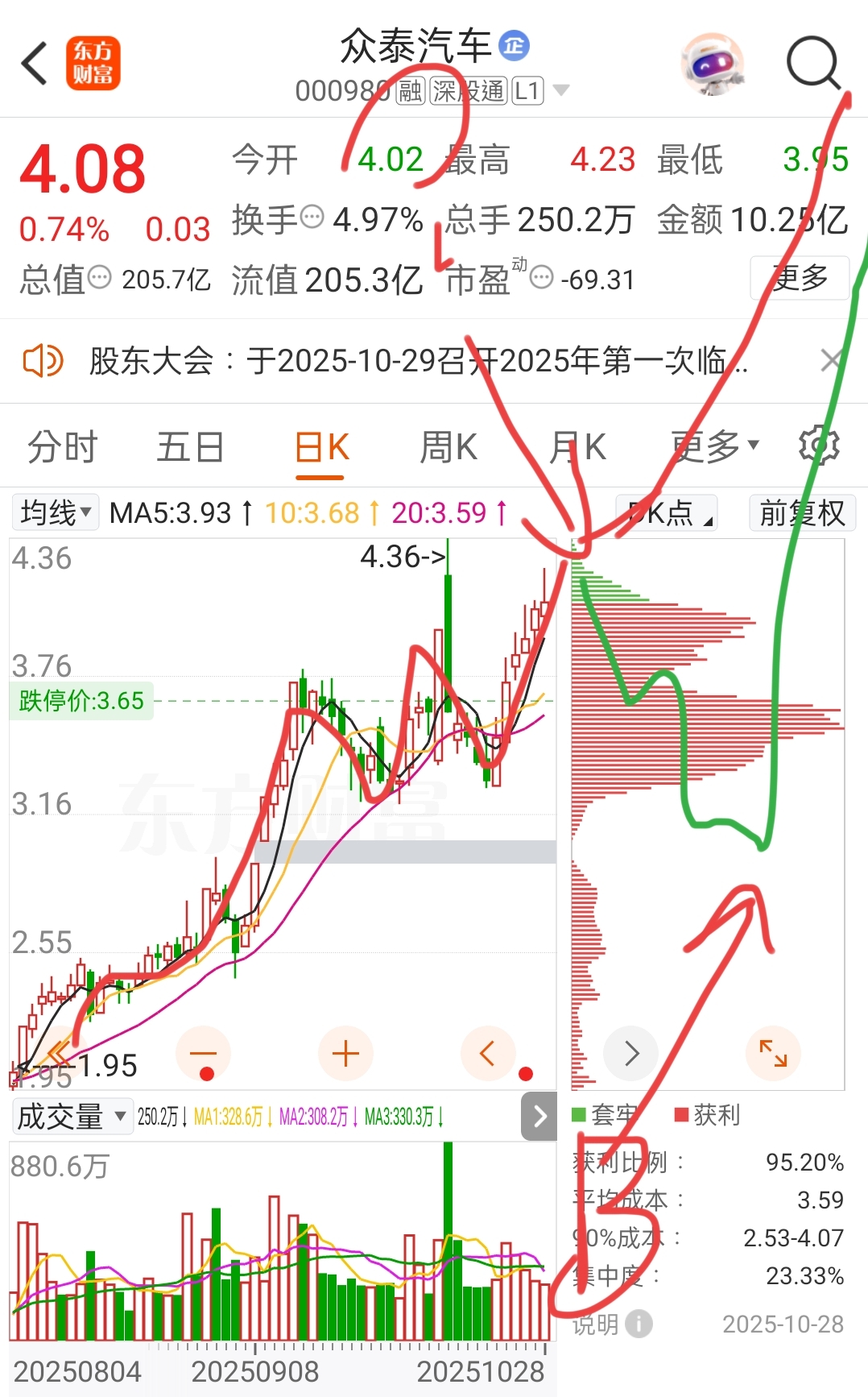 $众泰汽车(SZ000980)$ 一般下跌到一定程度才会巨大反转重组啥的,众泰直接开完股东大会给散户抬轿?一般合理位置是下杀再洗个半年一年之后B点位置宣布重大重组事项,总觉得这次上涨不会一直上涨,肯定要下跌,但这两周有点看不懂了回到10月13日的位置不涨不跌了,照理明天开股东大会要激情一番,今天也弱的一逼,一点激情都没有,完全就是平稳出货的赶脚