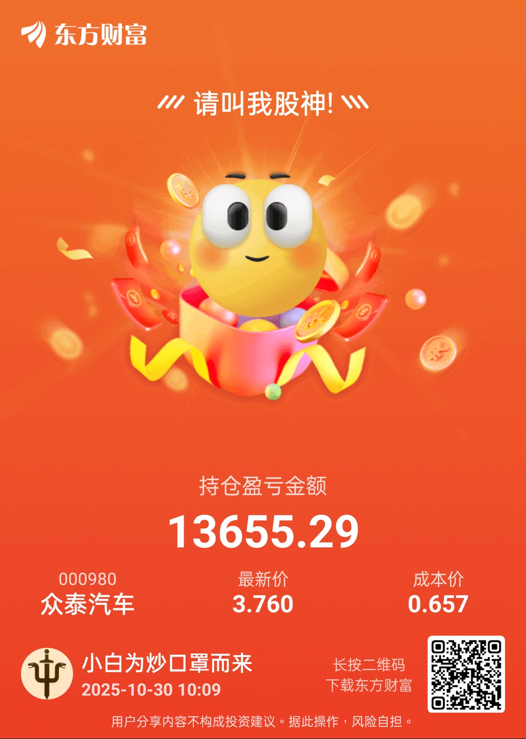 温馨提示: 1.根据《证券法》规定,禁止编造、传播虚假信息或者误导性信息,扰乱证券市场;2.用户在本社区发表的所有资料、言论等仅代表个人观点,与本网站立场无关,不对您构成任何投资建议。用户应基于自己的独立判断,自行决定证券投资并承担相应风险。《东方财富社区管理规定》