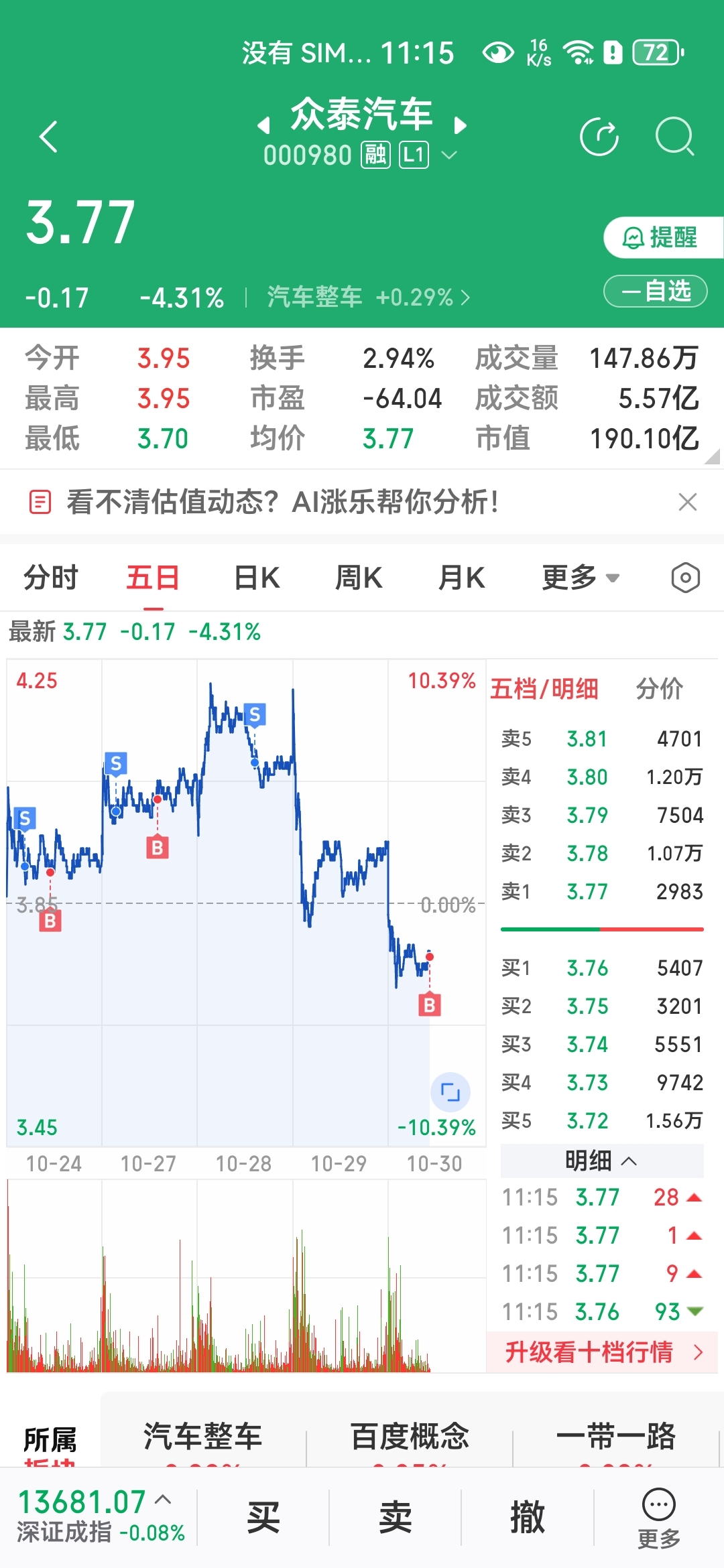 $众泰汽车(SZ000980)$ 跌的差不多了,可以再下手了