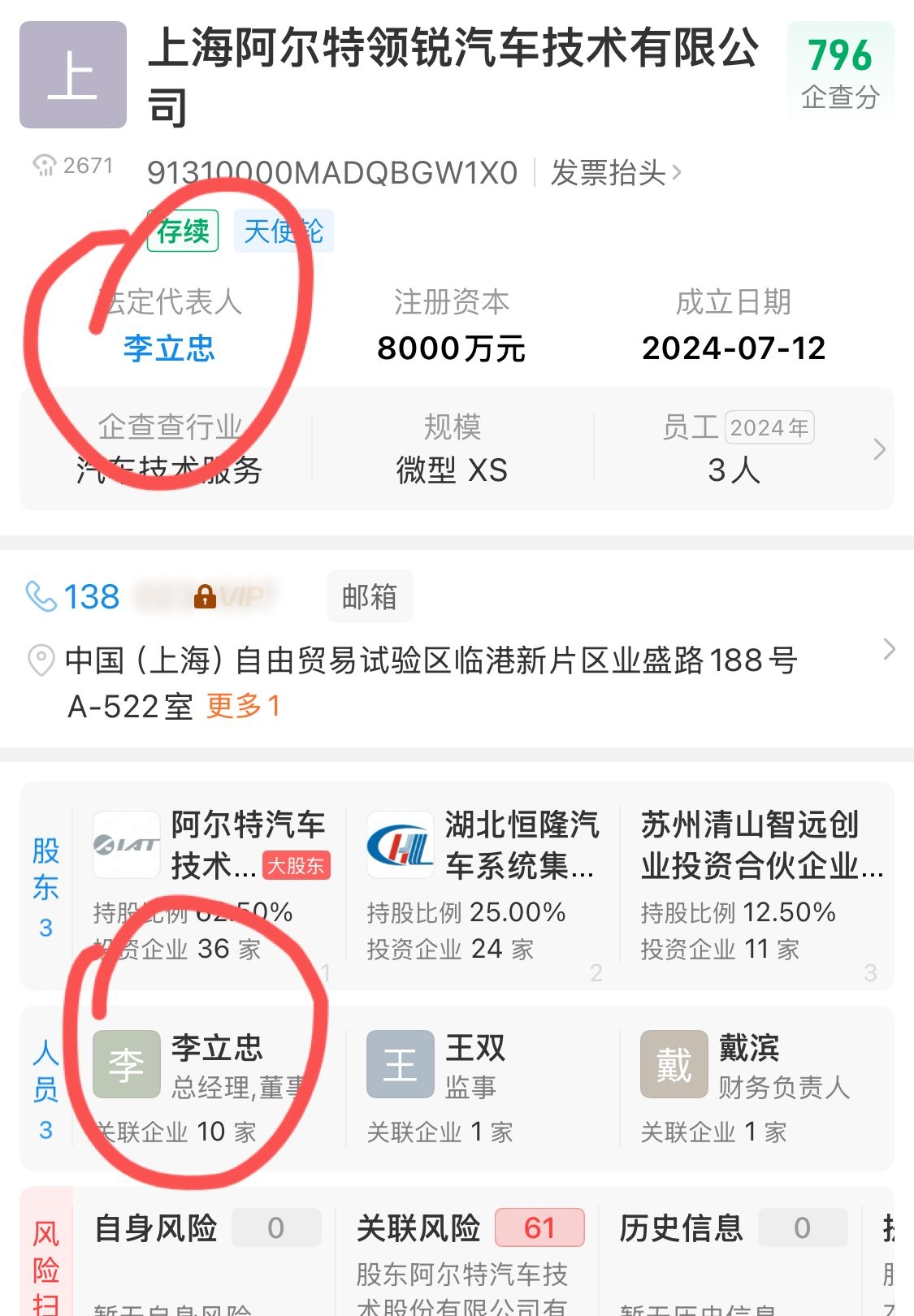 $众泰汽车(SZ000980)$ 众泰汽车 董事长李立忠先生,男,汉族,1963年10月出生,中国国籍,无境外永久居住权,毕业于清华大学,硕士研究生学历,国务院津贴专家、正高级工程师。1987年7月至1996年8月,就职于天津市汽车研究所,担任科长职务:1996年8月至1998年1月,就职于天津夏利汽车厂,担任副厂长职务:1998年2月至2002年6月,就职于天津汽车工业(集团)有限公司,担任总工程师职务:2002年7月至2023年10月,就职于奇瑞汽车股份有限公司,期间担任奇瑞汽车股份有限公司执行副总经理、奇瑞新能源汽车股份有限公司董事长、奇瑞汽车股份有限公司大连分公司董事长兼总经理、芜湖埃科泰克动力总成有限公司董事长、安徽海行云物联科技有限公司董事长、瑞鹄汽车模具股份有限公司董事职务;大连本瑞通汽车材料技术有限公司董事,观致汽车董事,2023年10月至今,就职于阿尔特汽车技术股份有限公司,担任副董事长职务。持有奇瑞股份第三大股东芜湖瑞创投资股份有限公司0.5%股份。