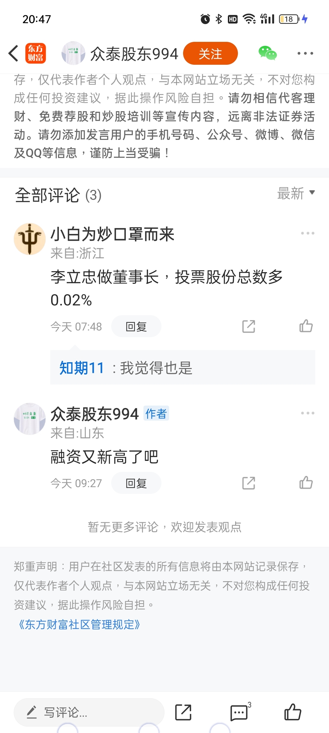 温馨提示: 1.根据《证券法》规定,禁止编造、传播虚假信息或者误导性信息,扰乱证券市场;2.用户在本社区发表的所有资料、言论等仅代表个人观点,与本网站立场无关,不对您构成任何投资建议。用户应基于自己的独立判断,自行决定证券投资并承担相应风险。《东方财富社区管理规定》