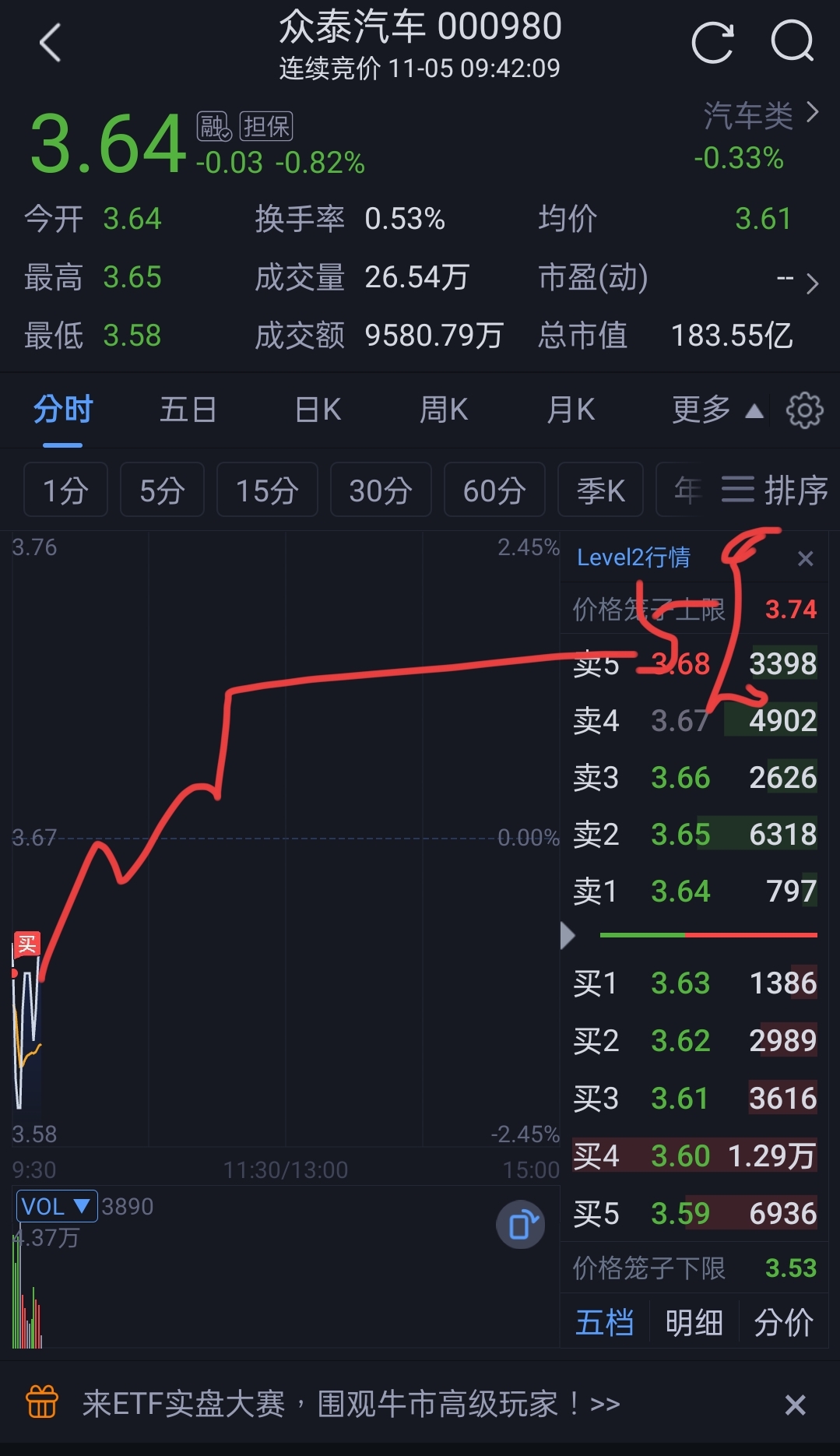$众泰汽车(SZ000980)$ 目测5个点反弹