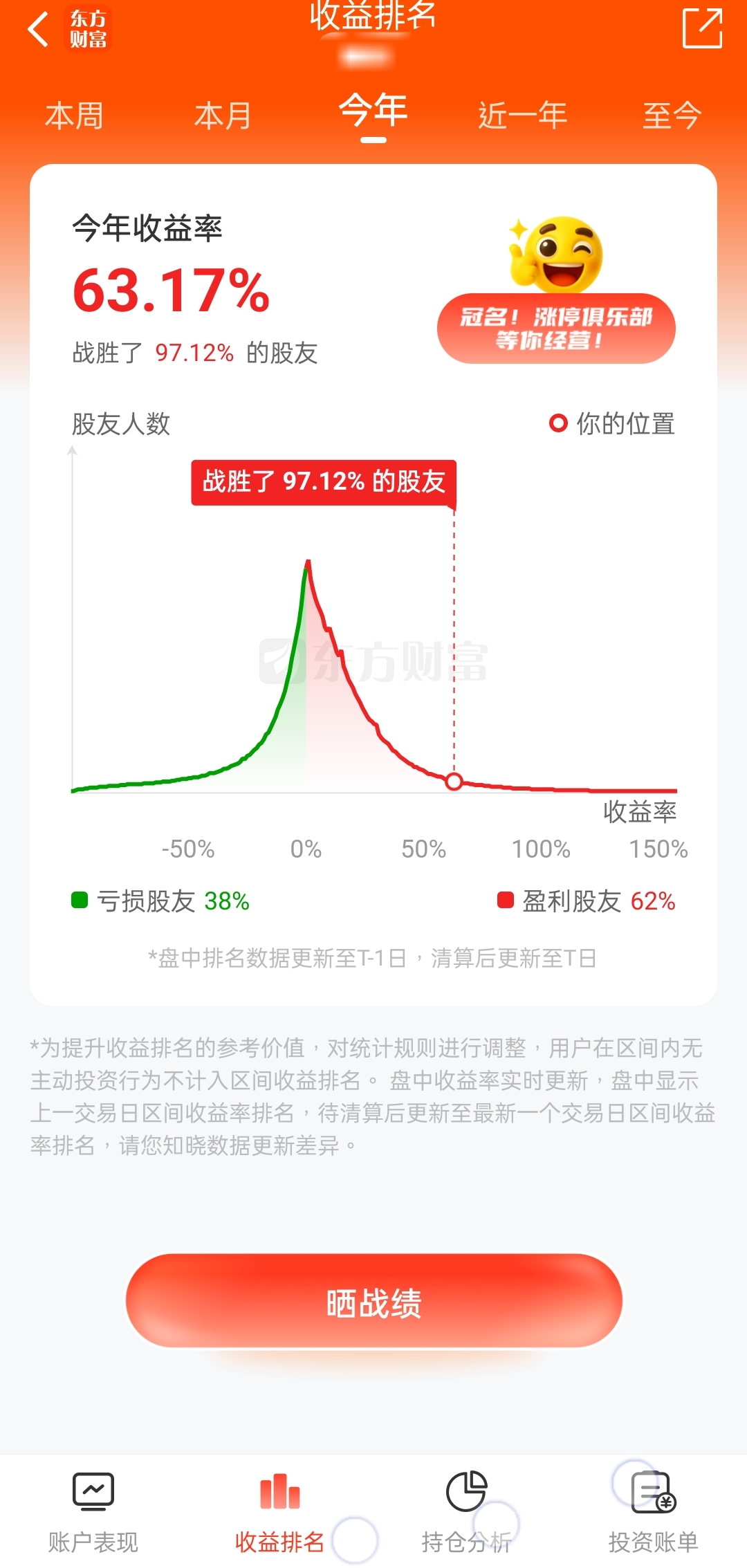 已经战胜了97%东方财富股民