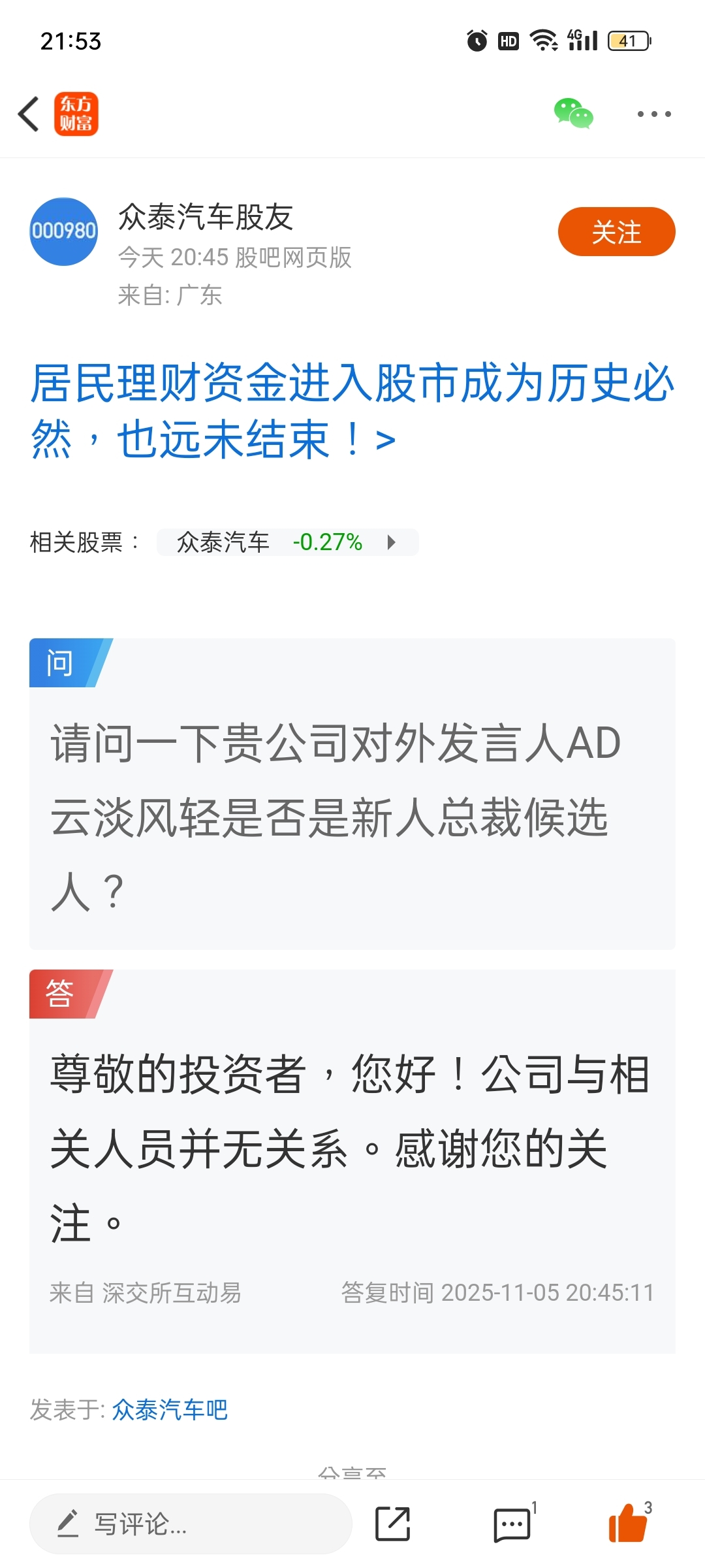 温馨提示: 1.根据《证券法》规定,禁止编造、传播虚假信息或者误导性信息,扰乱证券市场;2.用户在本社区发表的所有资料、言论等仅代表个人观点,与本网站立场无关,不对您构成任何投资建议。用户应基于自己的独立判断,自行决定证券投资并承担相应风险。《东方财富社区管理规定》