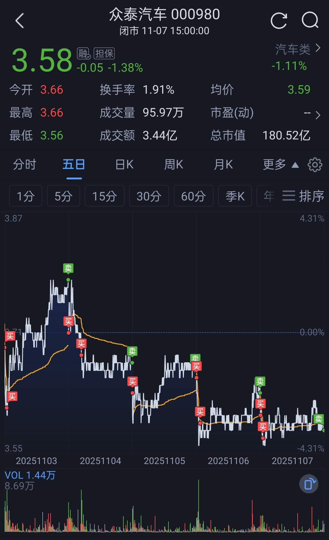 $众泰汽车(SZ000980)$ 连续五天是反T,拉圾东西