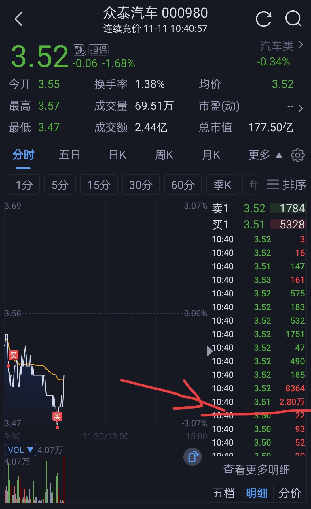 $众泰汽车(SZ000980)$ 2.8万手哥,来的再猛烈些吧
