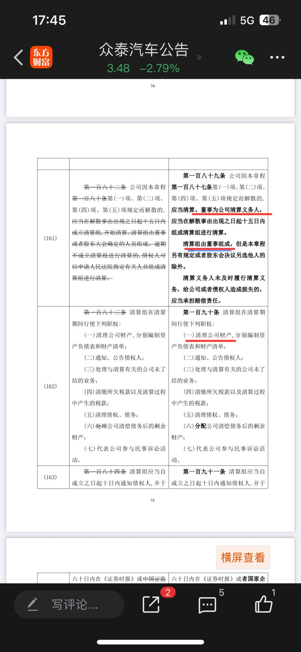 众泰汽车官方聘请律师事务所进行清算,新任董事为义务清理人,打开上面图片看。