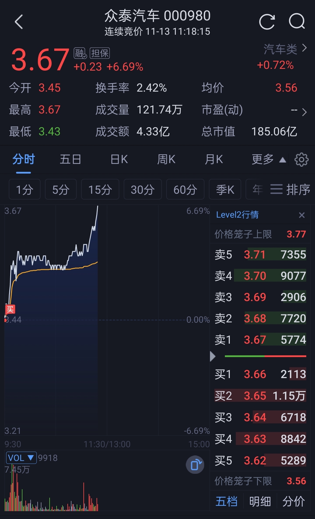 $众泰汽车(SZ000980)$ 犭句东西今天嗑药了