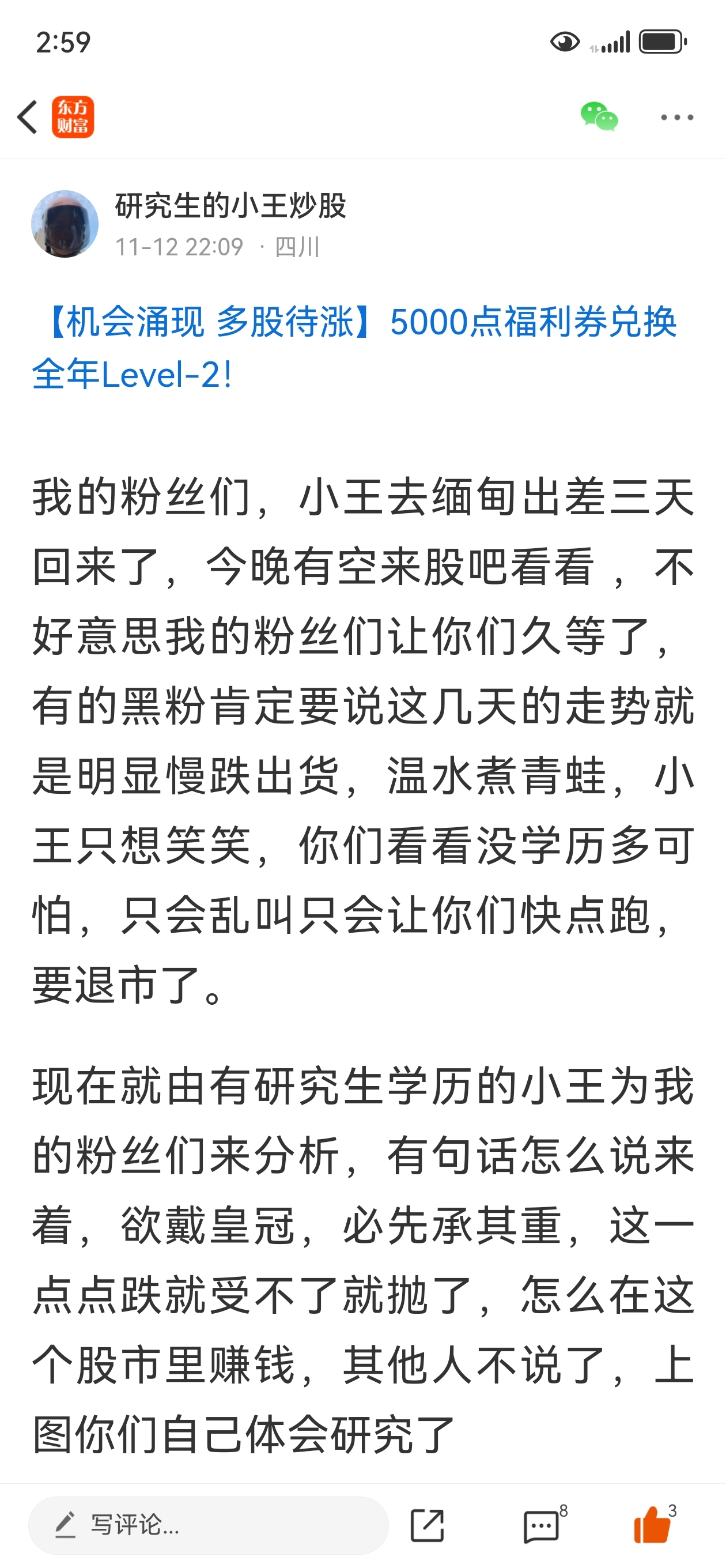 温馨提示: 1.根据《证券法》规定,禁止编造、传播虚假信息或者误导性信息,扰乱证券市场;2.用户在本社区发表的所有资料、言论等仅代表个人观点,与本网站立场无关,不对您构成任何投资建议。用户应基于自己的独立判断,自行决定证券投资并承担相应风险。《东方财富社区管理规定》