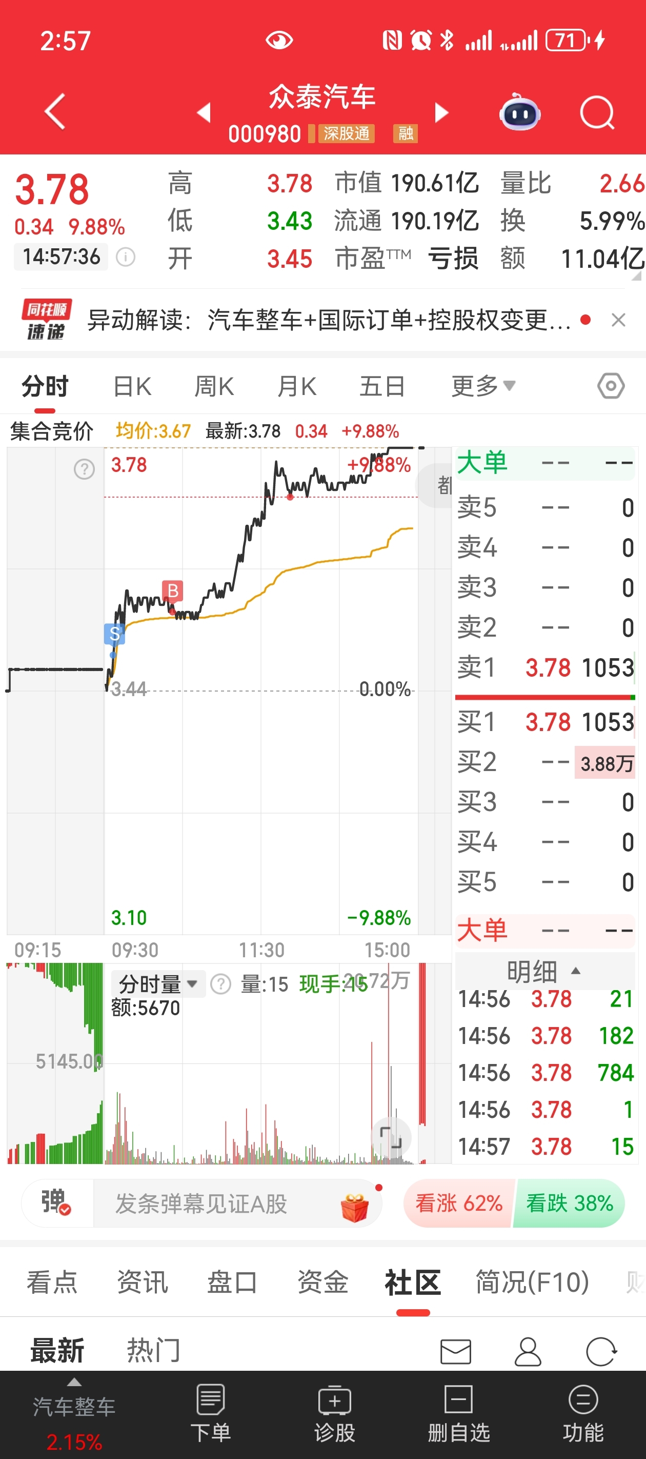 午盘感觉不对,3.54接一批,午后感觉能涨停3.71又接一批