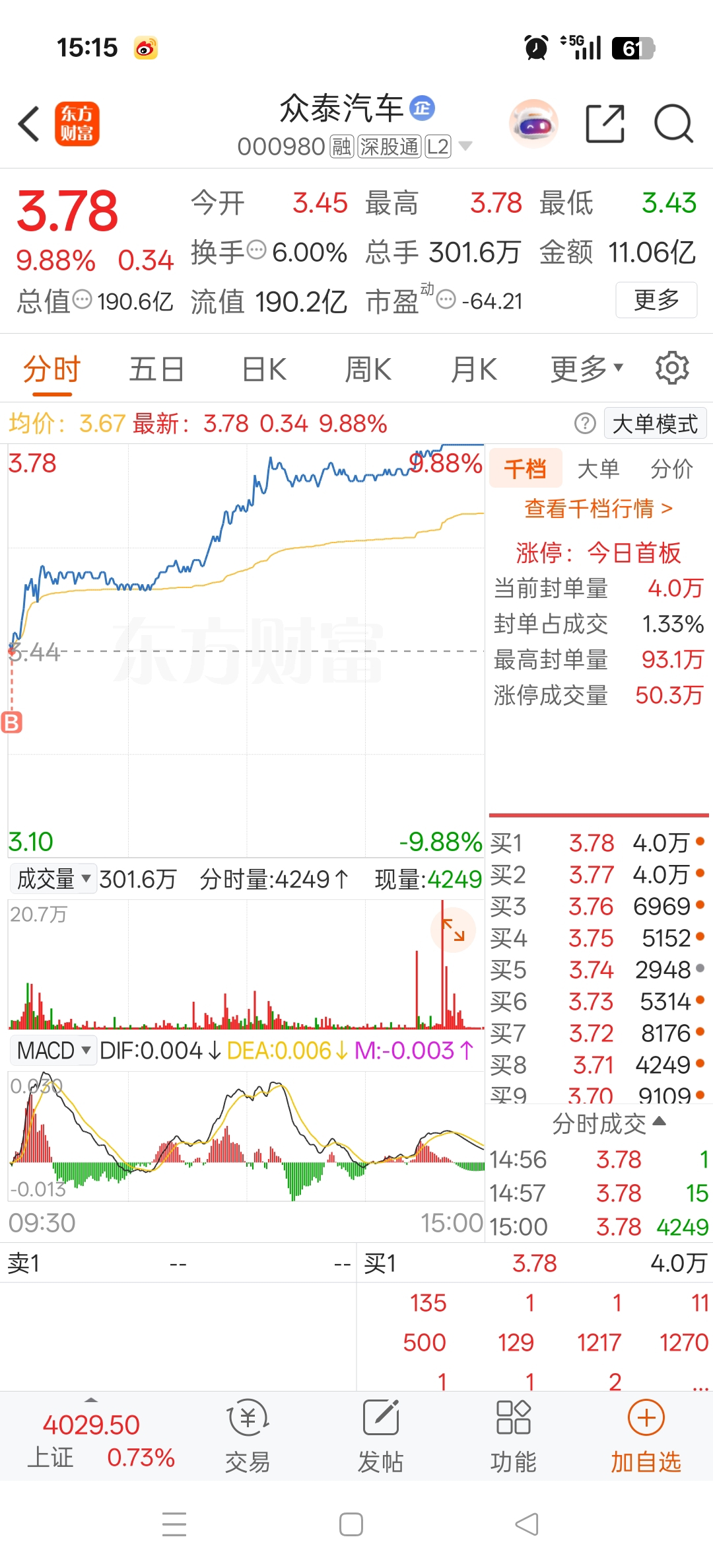 $众泰汽车(SZ000980)$ 这运气不错啊