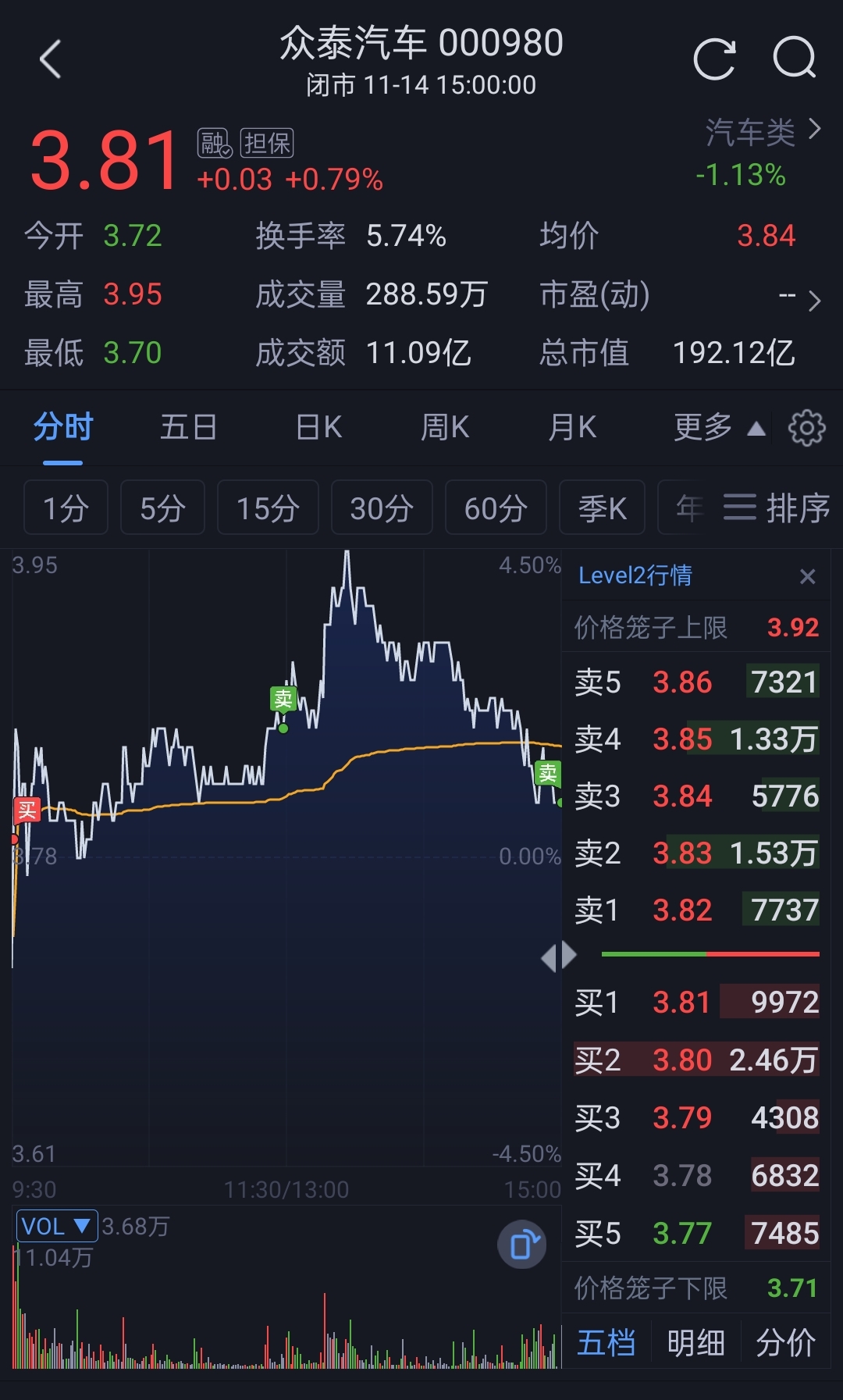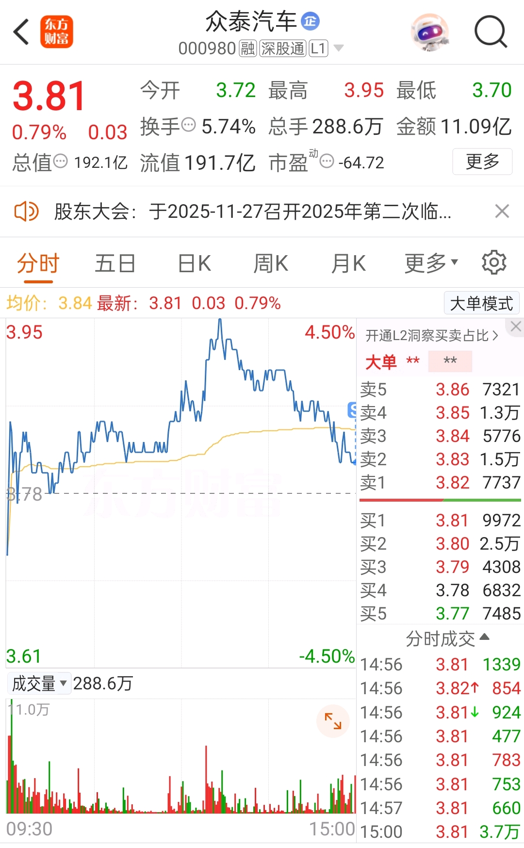主力不拉板勉强收红,感觉下周还要继续洗,1.半看着3.95不卖结果尾盘3.81不