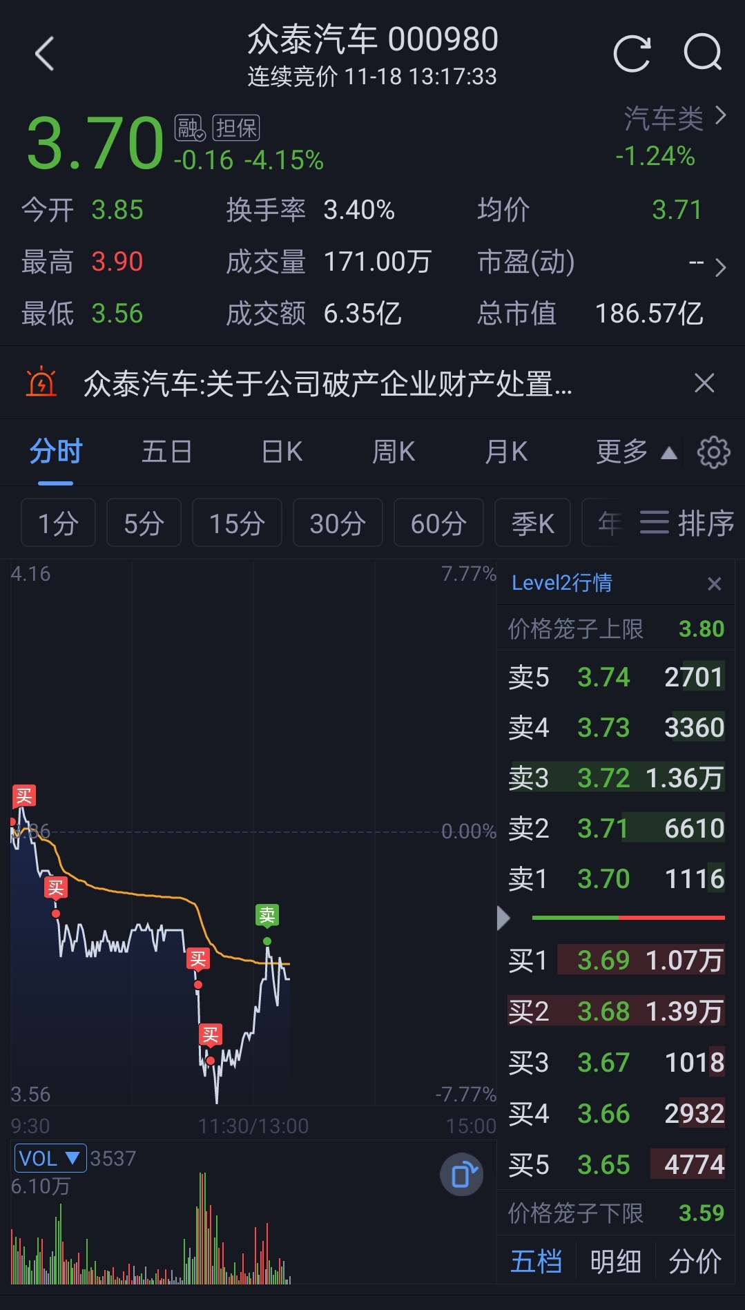 $众泰汽车(SZ000980)$ 拉圾随时都能买,分段买,分段卖