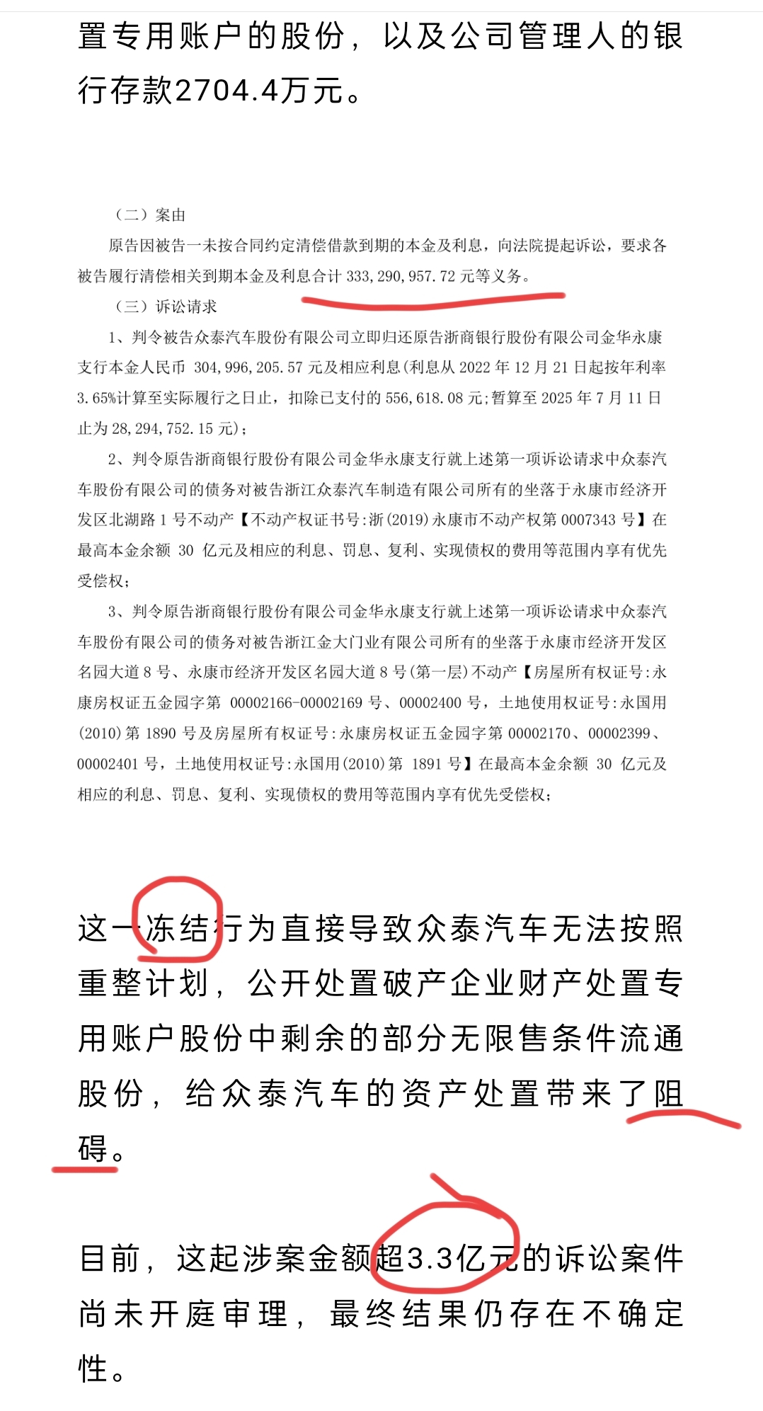 众泰破产账户减持1.51亿股,1.51*3.6=5.436减持约5.5亿人民币,