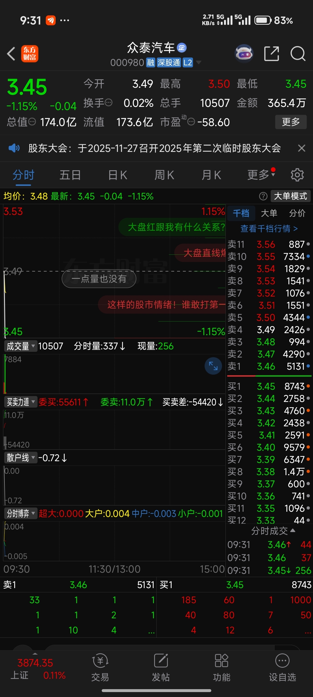 没人玩了,一分钟成交才万手