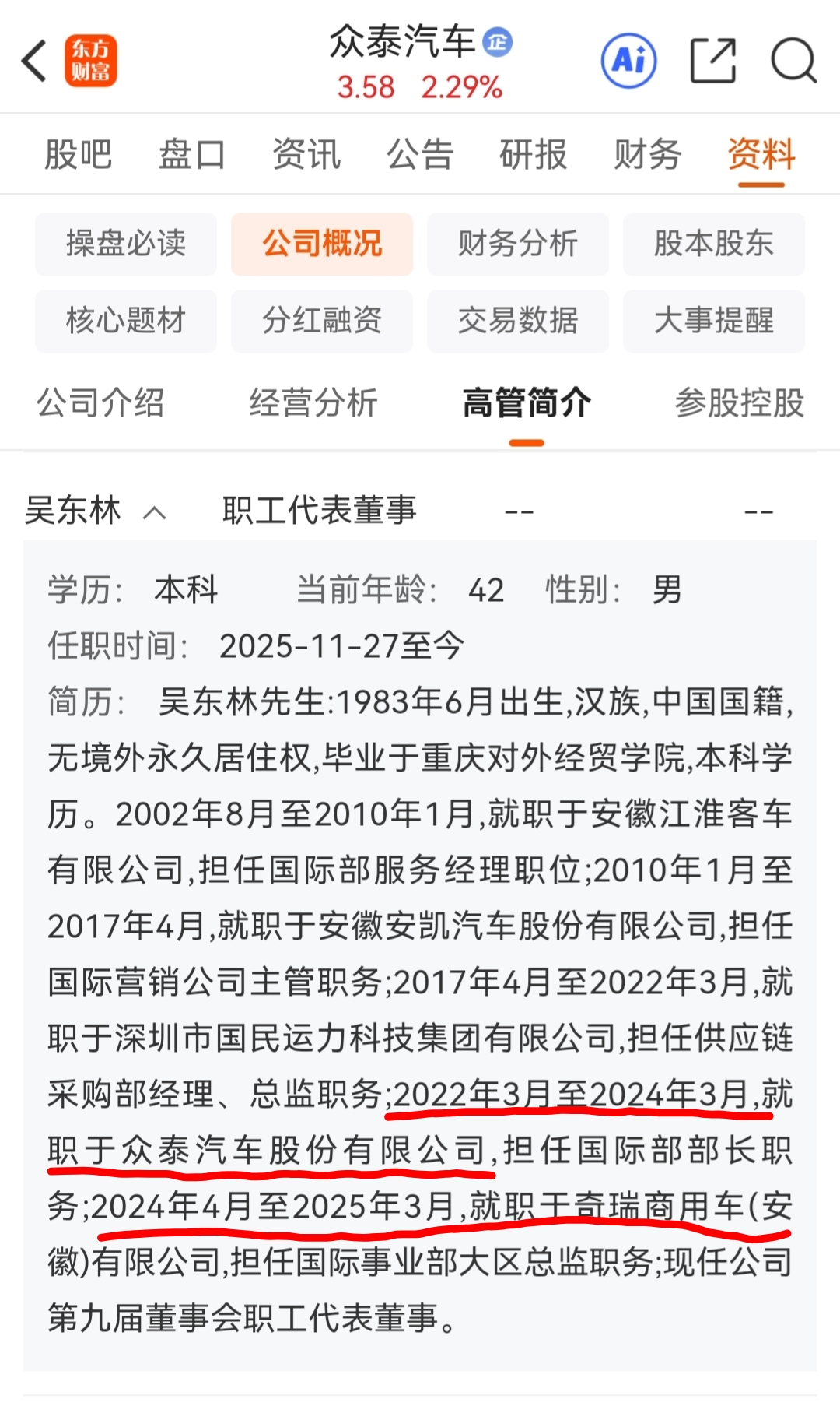 从众泰离职后去奇瑞任了一段时间职,