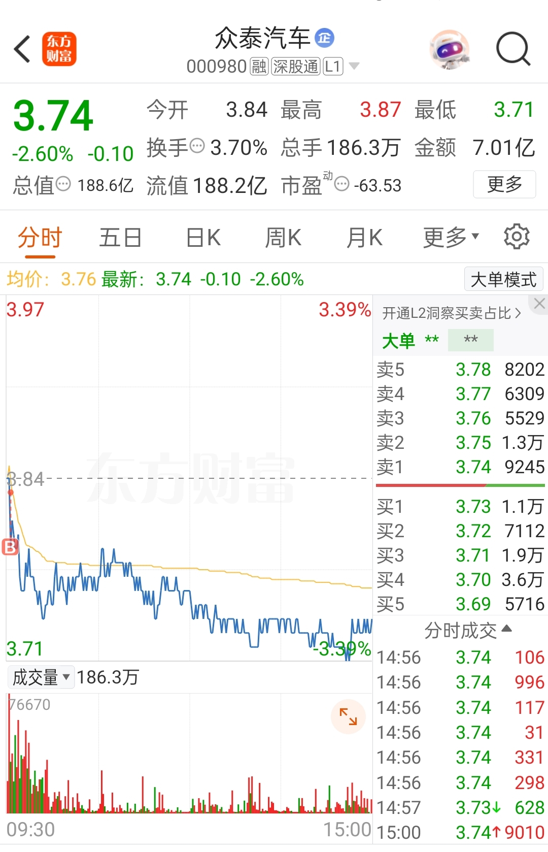 $众泰汽车(SZ000980)$ 波浪震荡了N次了,昨天融资加仓,以为今天这次总能拉上去了吧?开盘竞价很激烈很稳,万万没想到还是下来了